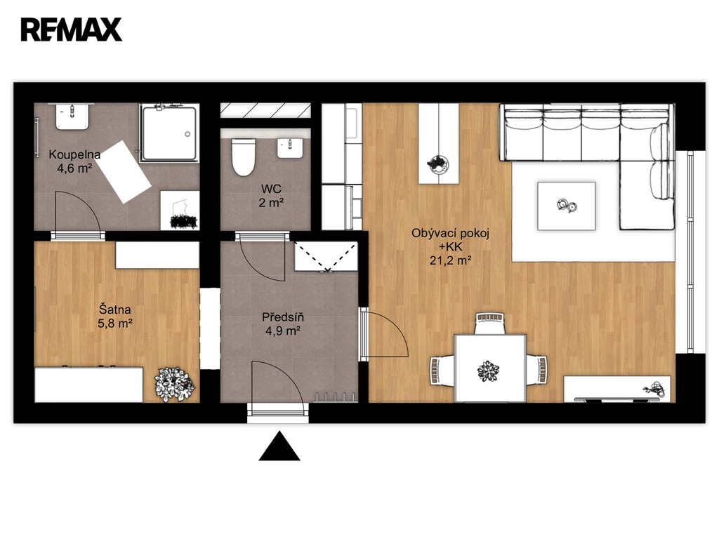 - Dispozice bytu: 1+kk