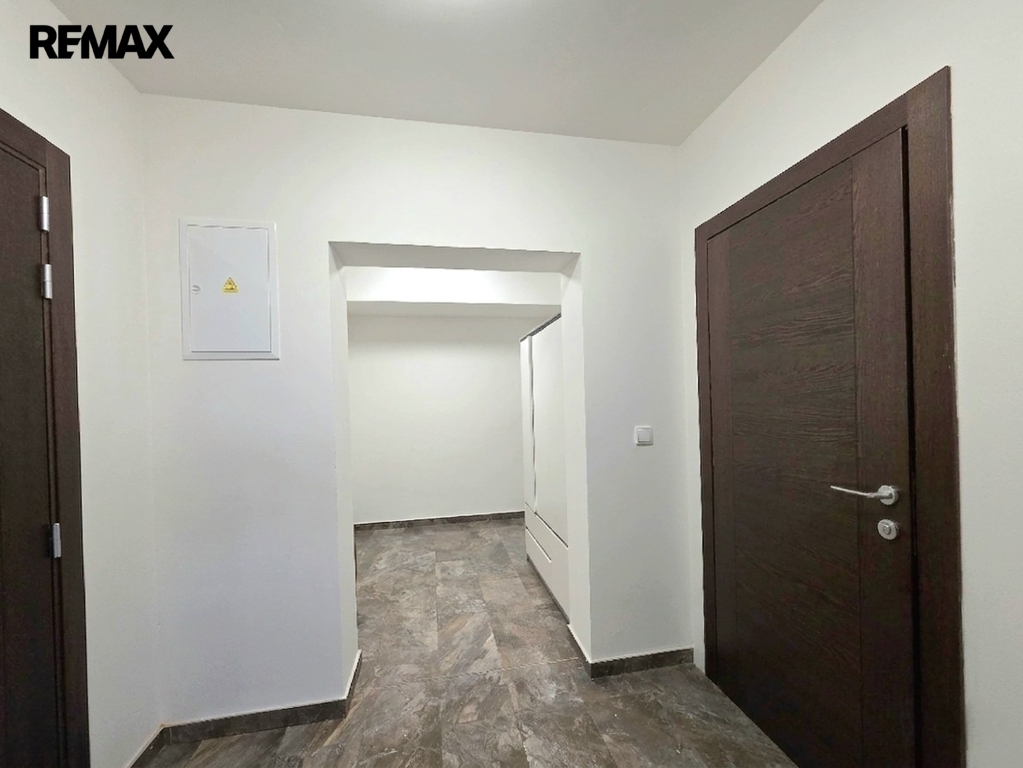 Dispozice bytu 1kk je prakticky řešena. Po vstupu do bytu přes bezpečnostní dveře se ocitnete v předsíni, která je vybavena moderním videotelefonem značky Urmet pro vaše bezpečí a pohodlí. Na předsíň navazuje prostorná šatna, která nabízí spoustu prostoru pro uložení Vašich věcí, čímž šetří místo v hlavní obytné části.