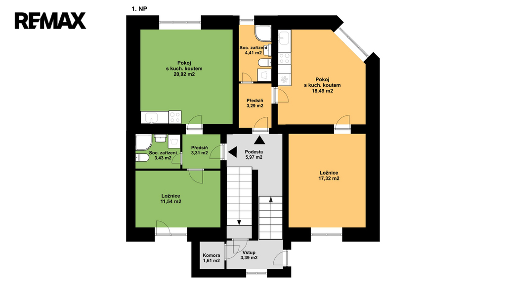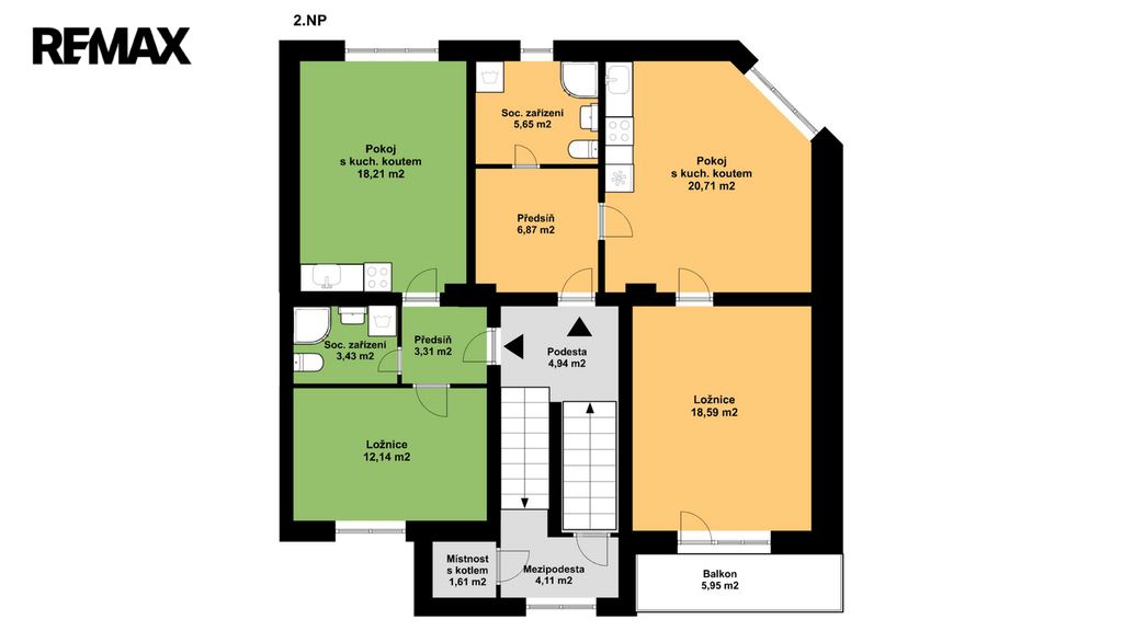 • Technické místnosti v mezipatrech – kočárkárna, komora, kotelna.