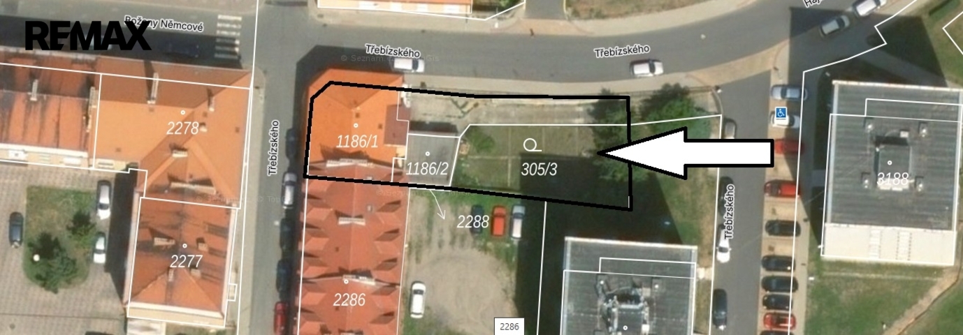 K domu náleží menší pozemek o výměře cca 300 m² – zahrada a zpevněná přístupová cesta ke garážím.