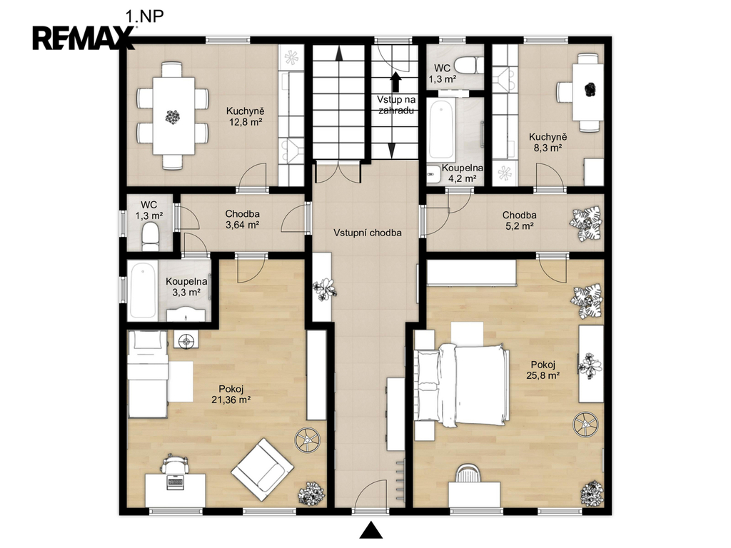 První podlaží - 1+1 - celková podlahová plocha 44,8 m²