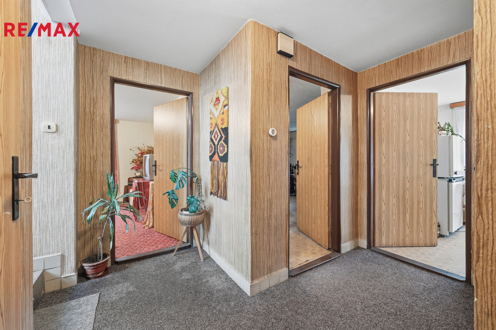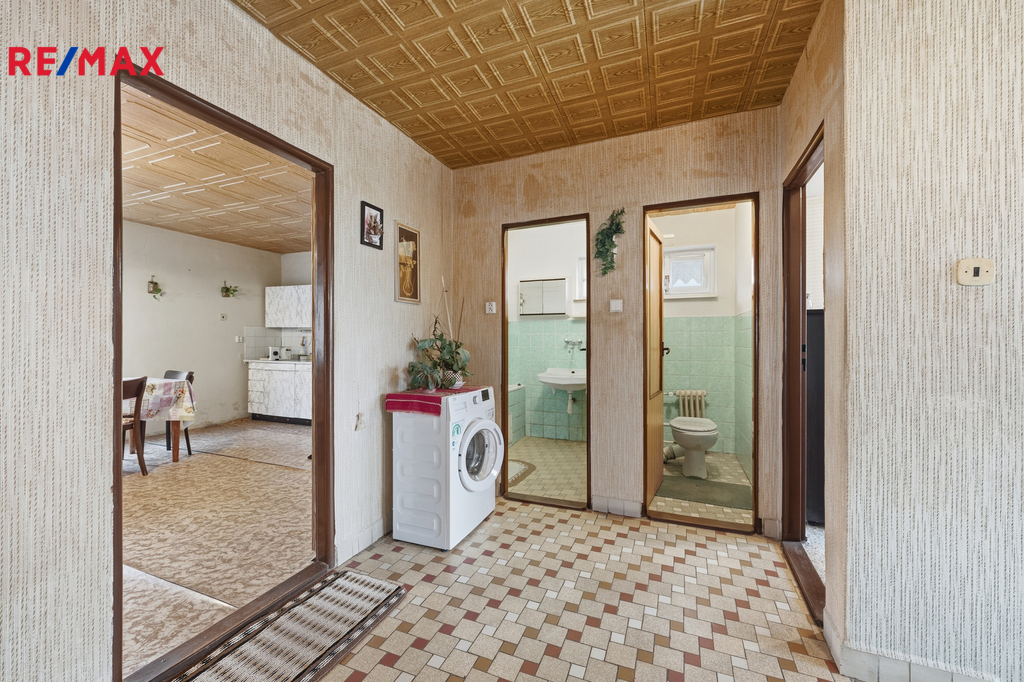 Dispozice domu umožňuje i případné dvougenerační využití – v přízemí najdete prostorný vstup, kuchyň, pokoj, koupelnu a vstup do garáže. V patře se nachází kuchyň s jídelním koutem, obývací pokoj, dva další pokoje a prostorný balkon. Suterén slouží jako technické a skladovací zázemí. Dům je v původním, avšak udržovaném stavu a je připraven k rekonstrukci – ať už sníte o moderním rodinném zázemí, nebo o útulném venkovském stylu.