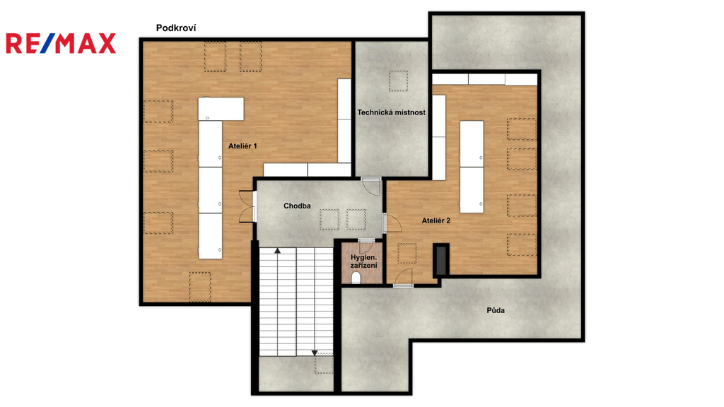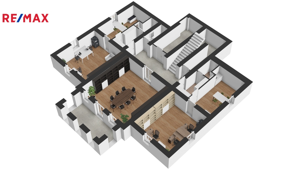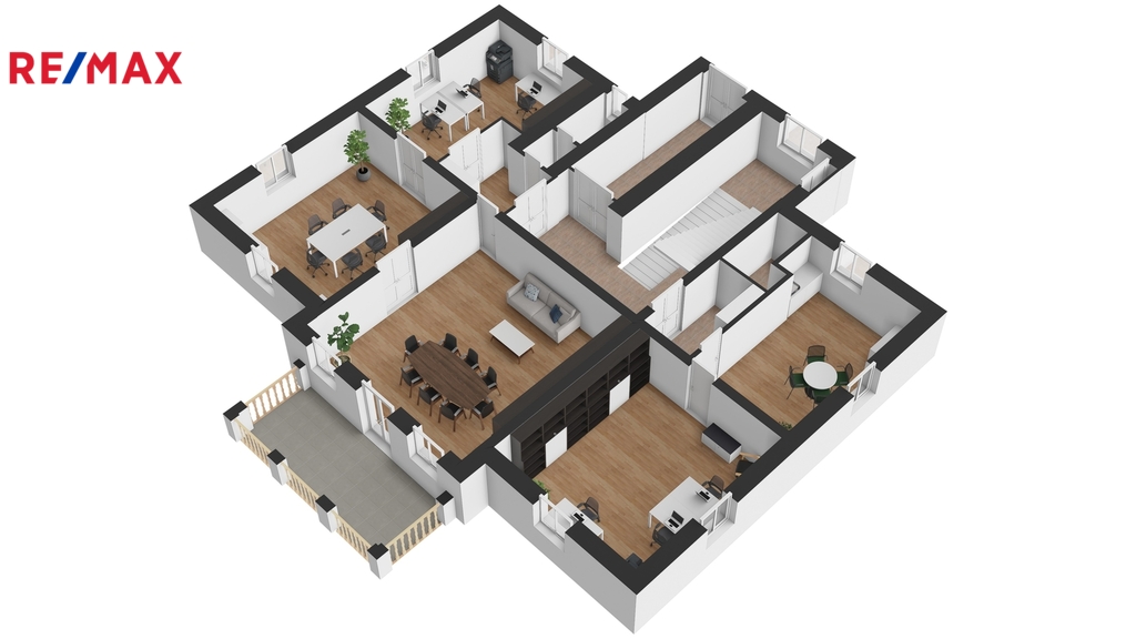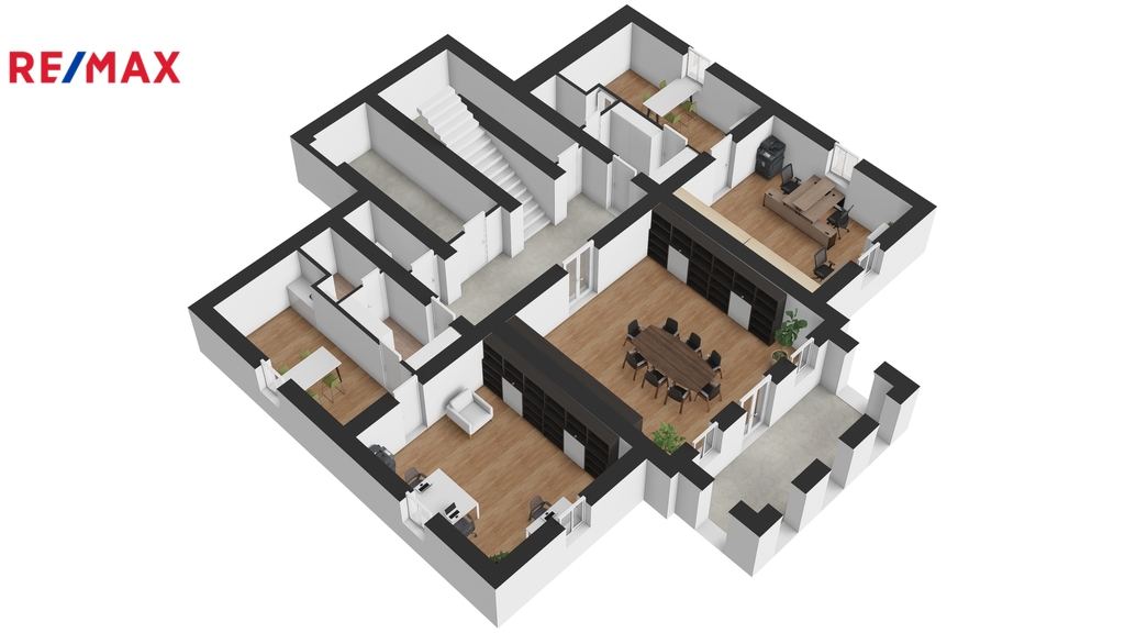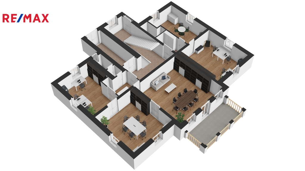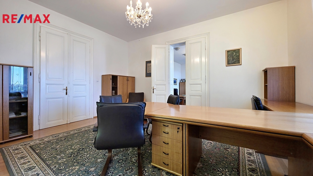 Nemovitost je aktuálně využívána jako sídlo firmy. Budova nabízí užitné prostory na čtyřech podlažích. Dispozice je patrná z přiložených 2D a 3D půdorysů. Kromě kanceláří a jednacích místností se zde nachází apartmán, služební byt 3+1 a v podkroví dva ateliéry. Z 1. a 2.NP je vstup na velkorysou terasu s výhledem do zahrady a na České středohoří. V suterénu najdete reprezentativní jednací místnost s barem a vstupem přímo do zahrady.