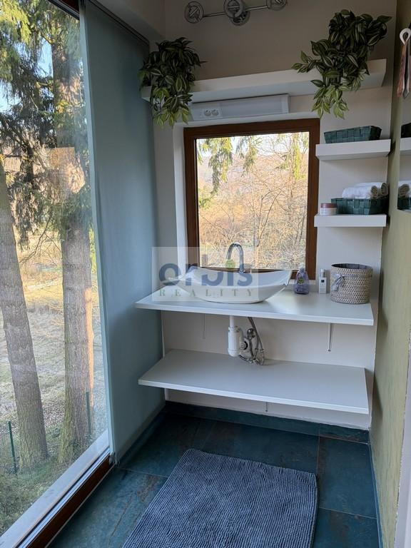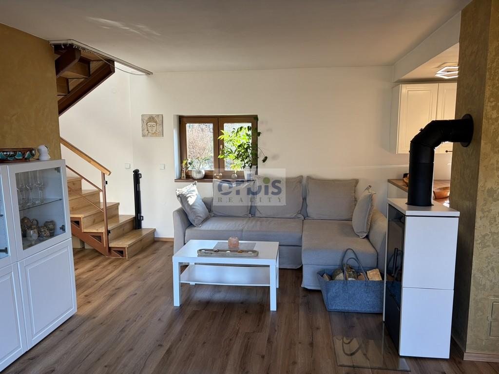 Chalupa je dispozičně řešena jako 3+kk s obytnou plochou cca 100 m + krytá veranda se sezením cca 13 m.