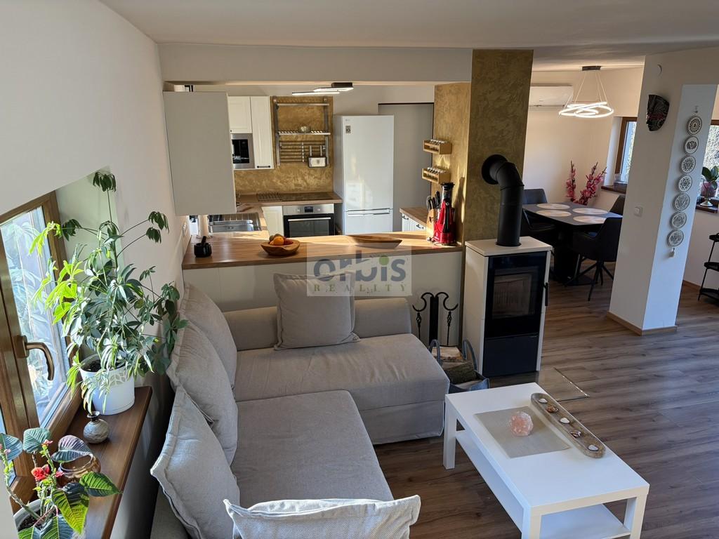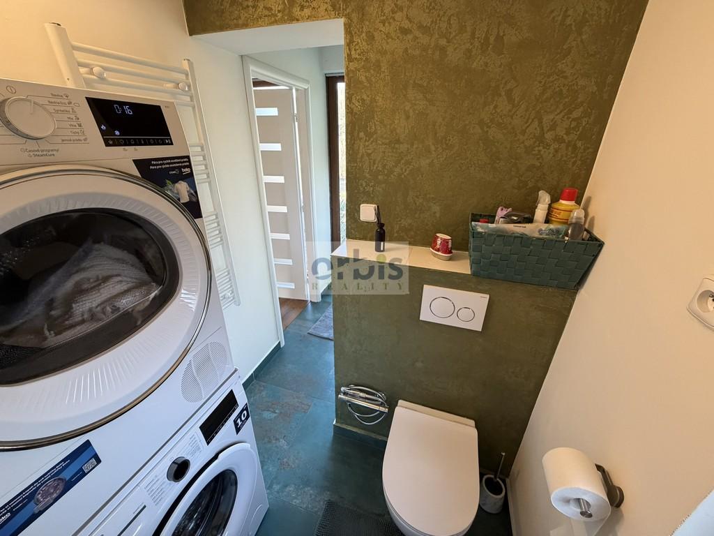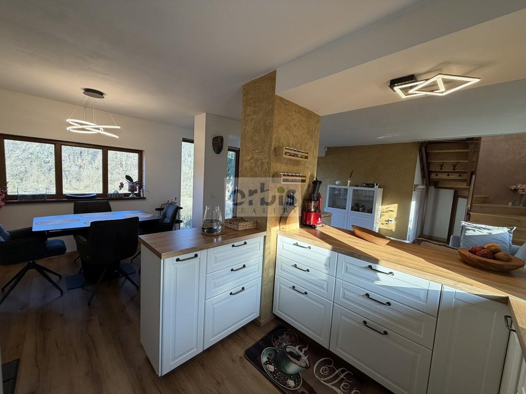 Přízemí: obývací pokoj se sedací soupravou, nová kuchyňská linka včetně spotřebičů (varná deska, elektrická trouba, myčka, lednice, mikrovlnná trouba), nová koupelna s vanou a WC.