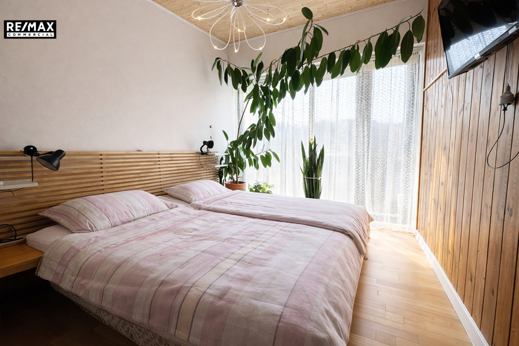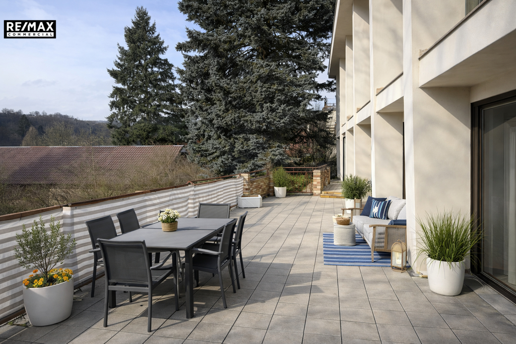 Objekt je podsklepený (pod terasou) a má dvě nadzemní podlaží. Nabízí prostornou a variabilní dispozici s větším počtem pokojů.