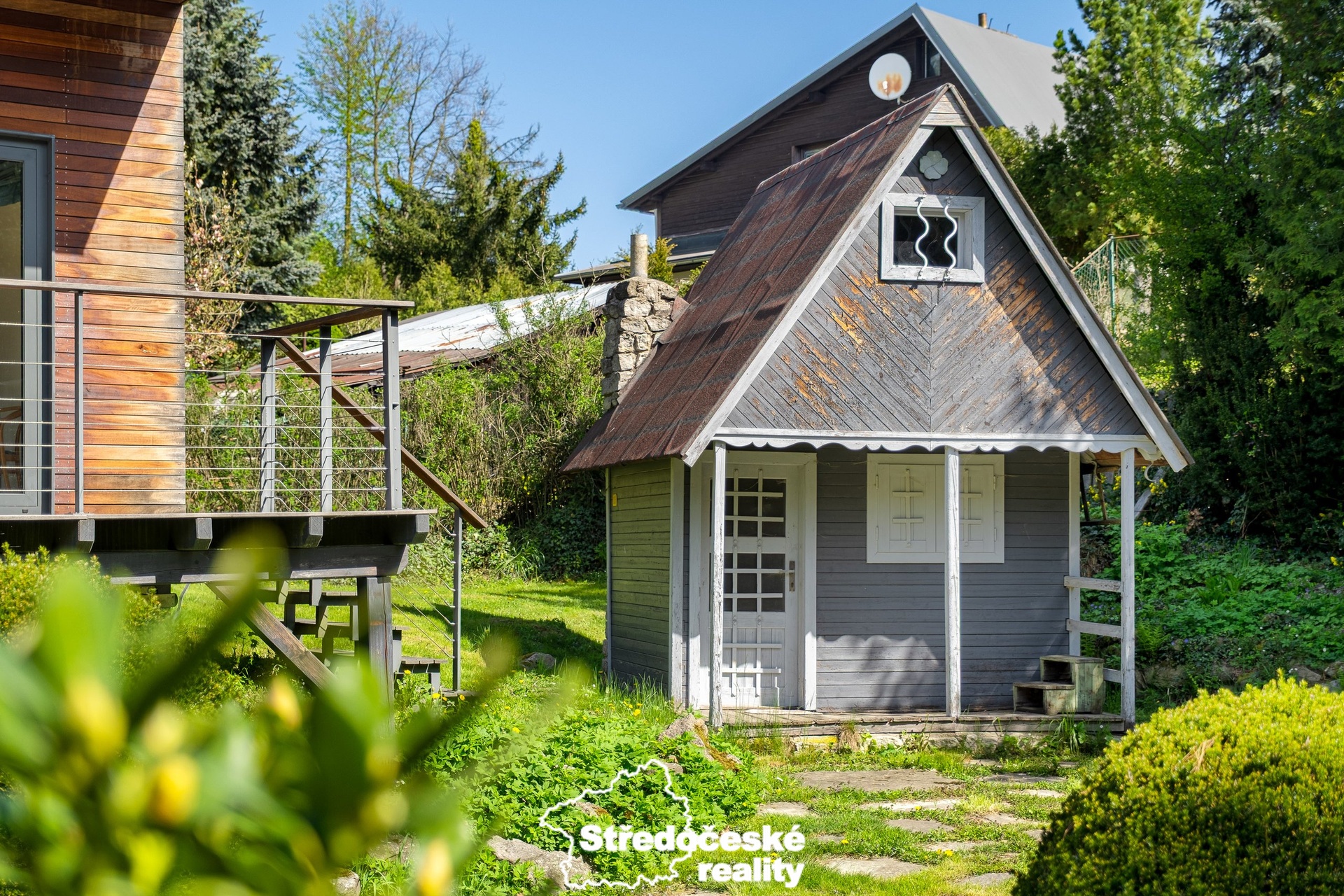 Na pozemku se nachází také menší chatka, kterou lze využít jako zázemí pro děti, hosty nebo jako kůlnu.