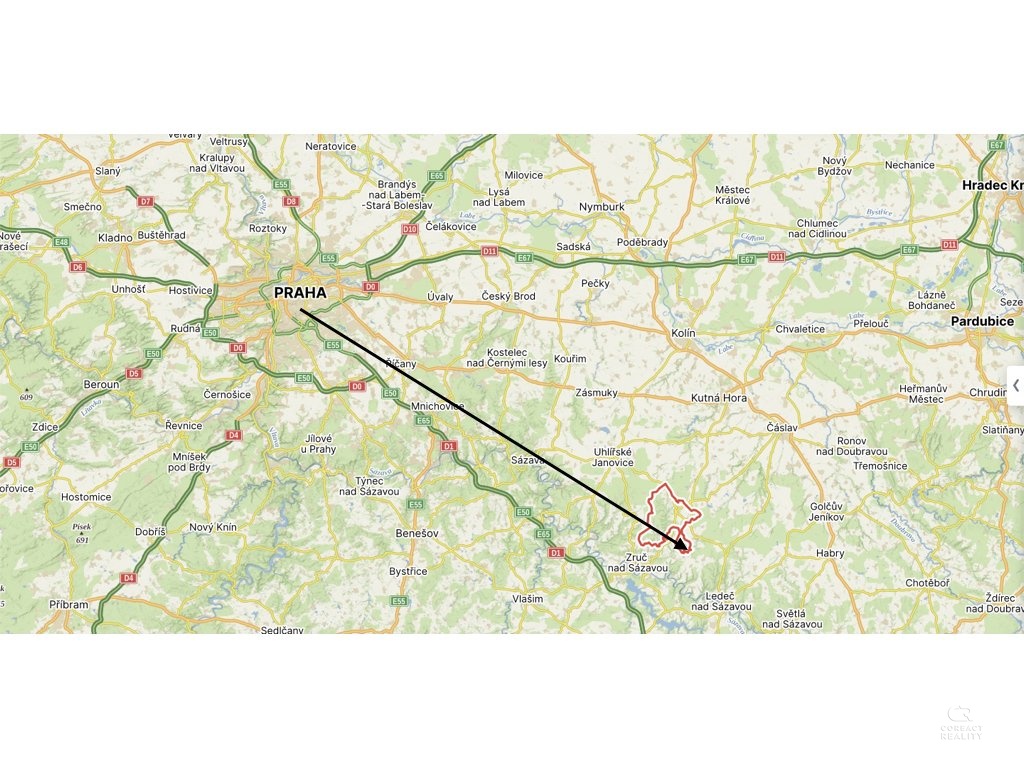 Pozemek je zasazen do krásné přírody hned u lesa a vedle pozemku je pouze jeden soused. Pozemek je na místě s rychlým dojezdem na dálnici D1 a najíždí se u Zruče nad Sázavou.