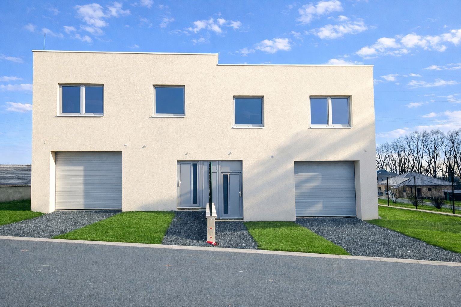 Rodinný dům je moderní novostavba, kolaudovaná v roce 2025, dům je rozdělen na dvě stejné bytové jednotky, každá o výměře 133 m2 užitné plochy včetně garáže, každá se samostatným vlastním vchodem a vlastní částí pozemku (zahrady a prostoru před garáží) o výměře cca 380 m2. Pozemek je z větší části oplocený, a to včetně dělícího plotu.