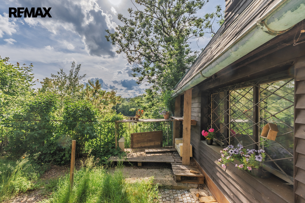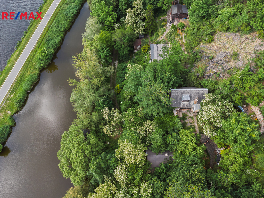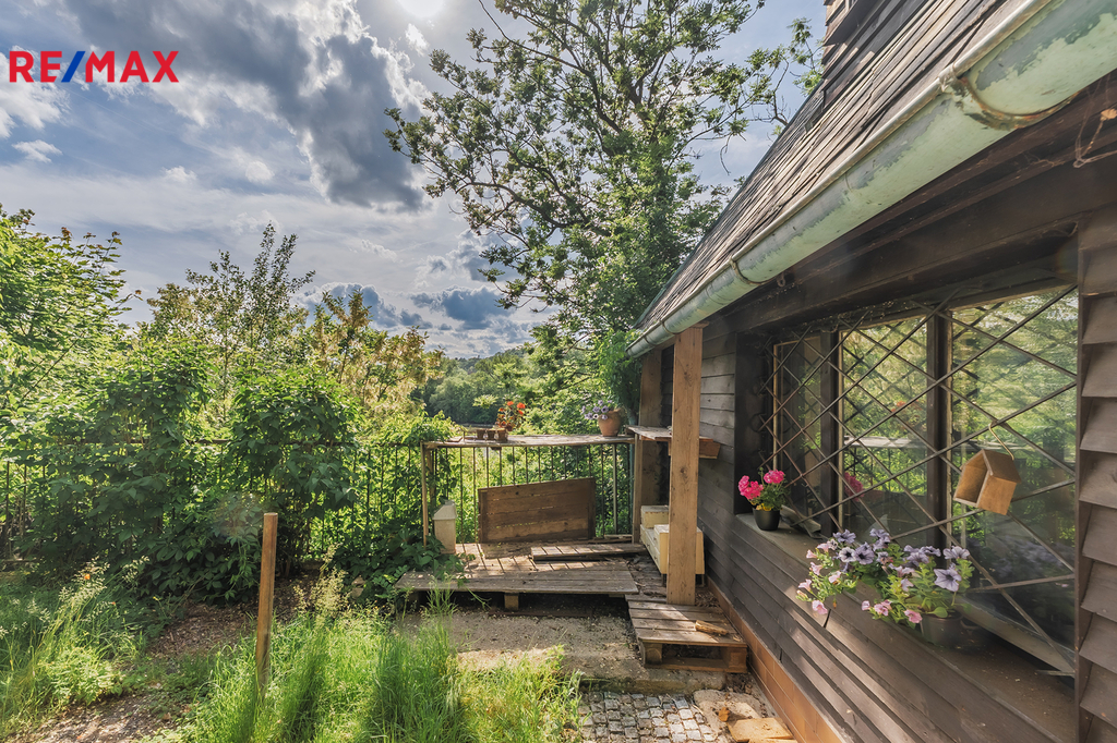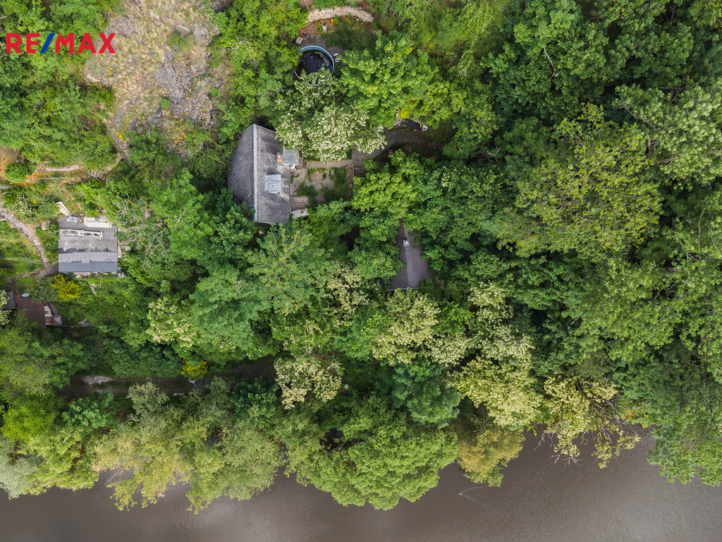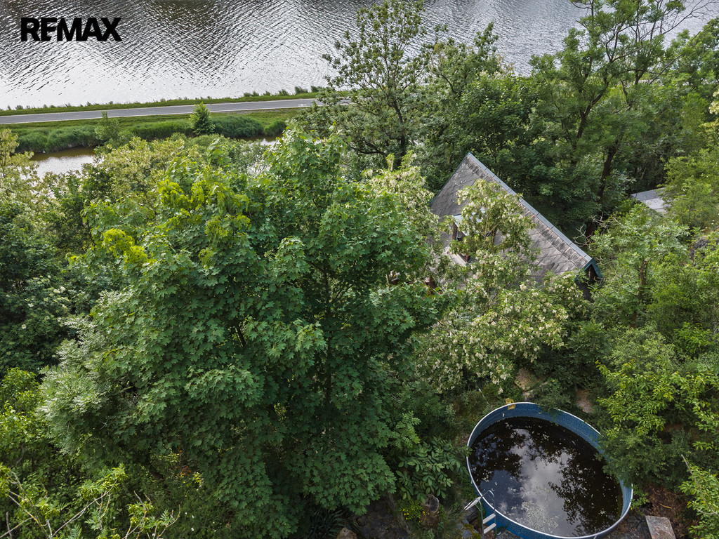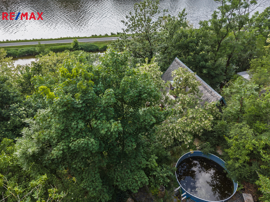 Prodej dvou rekreačních chat s úžasným výhledem na Vltavu přímo na břehu rybníka