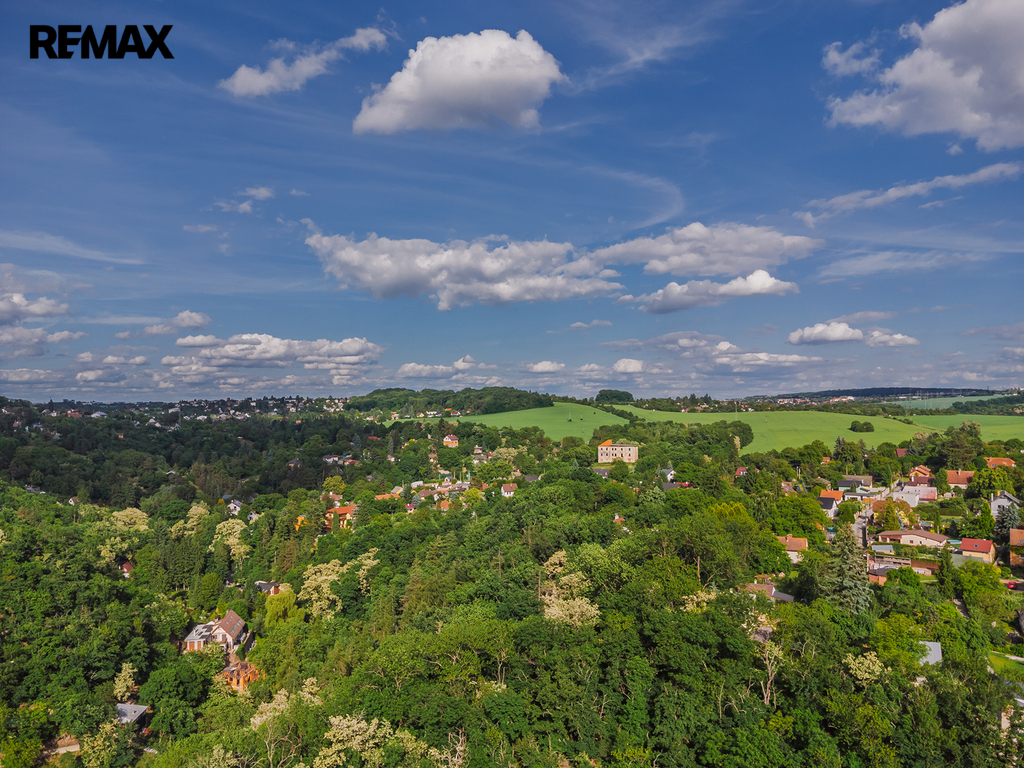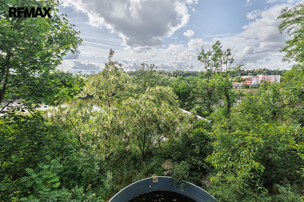 Nádherný výhled na krajinu, vodní hladinu a Roztocký zámek.