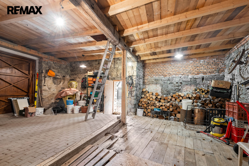 Stodola (část C) nabízí dostatek prostoru pro garážování, dílnu, sklad nářadí a dřeva na topení. I tato část má 2 podlaží, horní patro může v budoucnu sloužit např. pro rozšíření ubytovací kapacity. Za stodolou se nachází další parkovací místa.