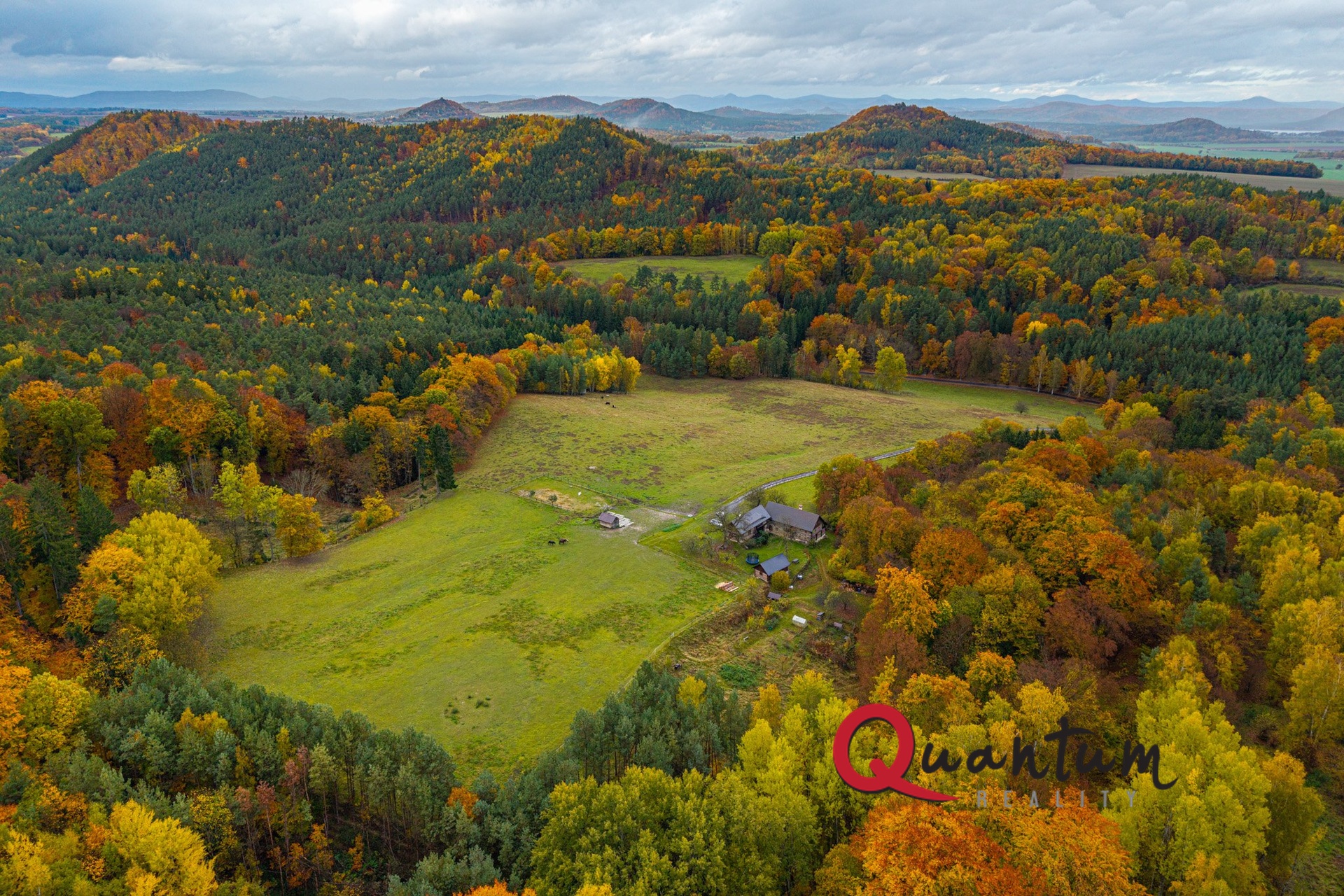 Usedlost s dvěma roubenými stavbami na pozemku 71 538 m² v CHKO Kokořínsko – Ždírecký Důl