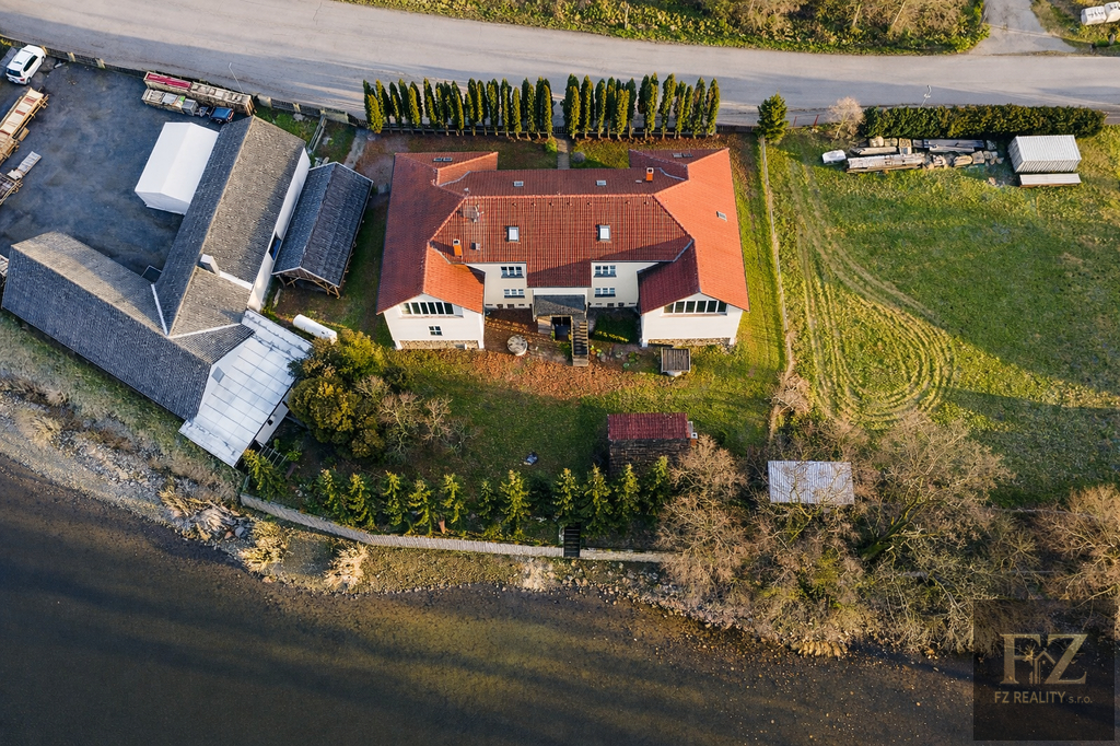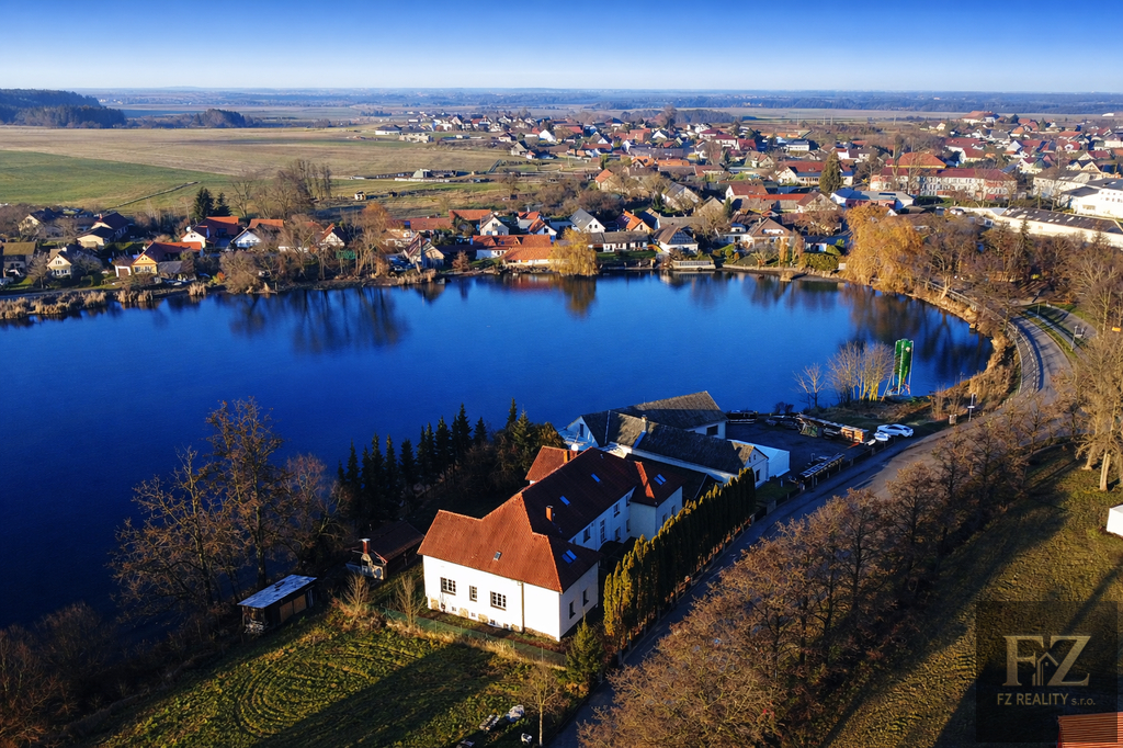 Nemovitost stojí na pozemku o výměře 1 752 m² se zastavěnou plochou 370 m². Pozemek sahá až k přilehlému rybníku a nabízí vlastní vstup přímo do vody, což je benefit, který u investičních objektů tohoto typu prakticky neexistuje a výrazně zvyšuje atraktivitu budoucích jednotek. Dům leží u hlavní silnice, kde je pohodlné parkování, a zároveň má vlastní kryté stání pro auta. Na zahradě je velká společenská pergola s grilem a krásným výhledem na rybník. Lokalita je velmi klidná, v těsné blízkosti domu není jiná rodinná zástavba, která by rušila pohodu a soukromí.