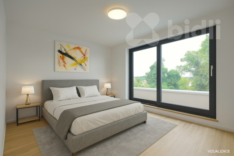 Dispozice 5+kk je navržena tak, aby interiér působil vzdušně, funkčně a příjemně.