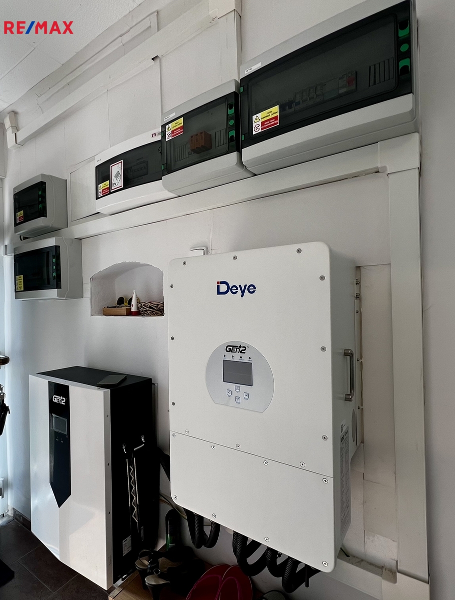 • hybridní měnič + baterie 10 kWh (s nouzovým režimem při výpadku elektřiny)