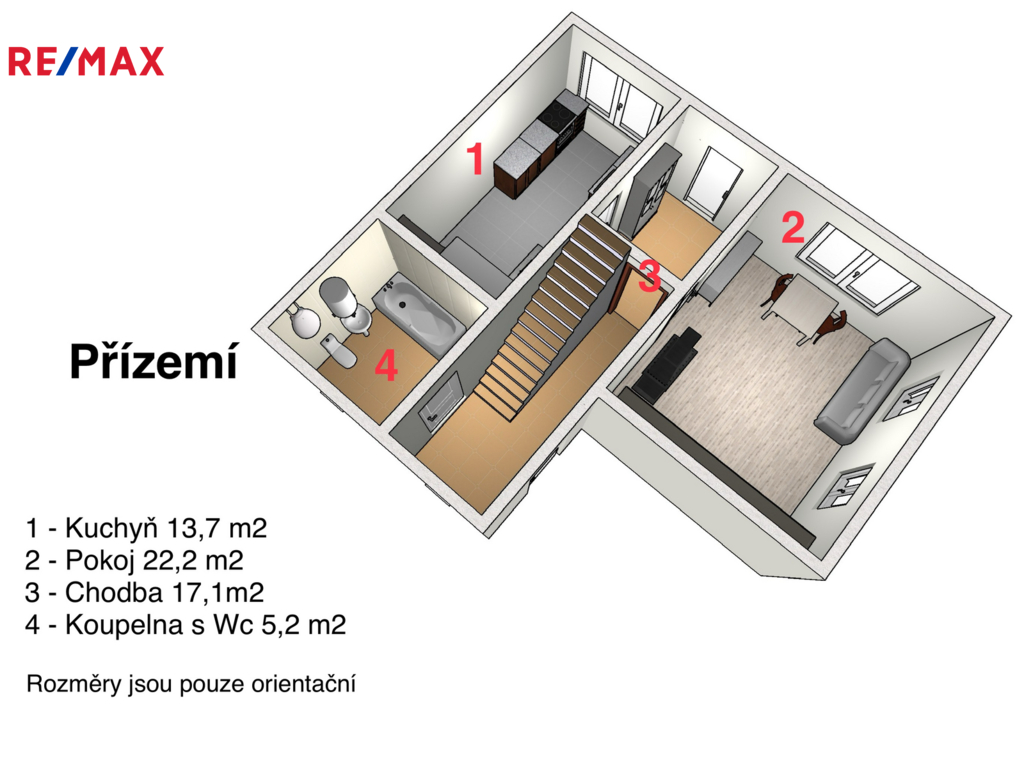 • dům je připraven k okamžitému bydlení, s možností dalšího využití (rodinné bydlení, dvougenerační řešení, případně kombinace bydlení a podnikání).