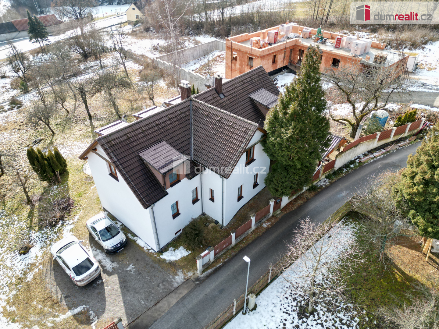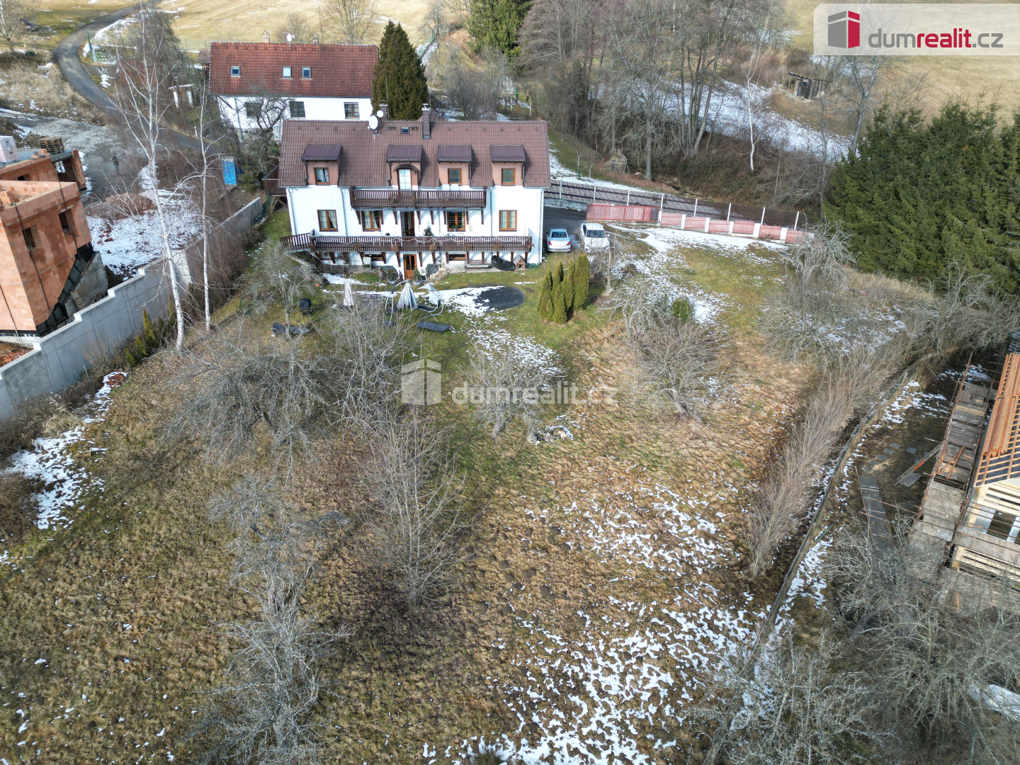 Zahrada se vzrostlými ovocnými stromy je východním směrem svažitá. Celková plocha pozemků 2140 m². Což znamená, že při nejmenší zastavitelné rozloze 1.000 m² dle místních kritérií je zde možnost výstavby ještě jednoho RD.