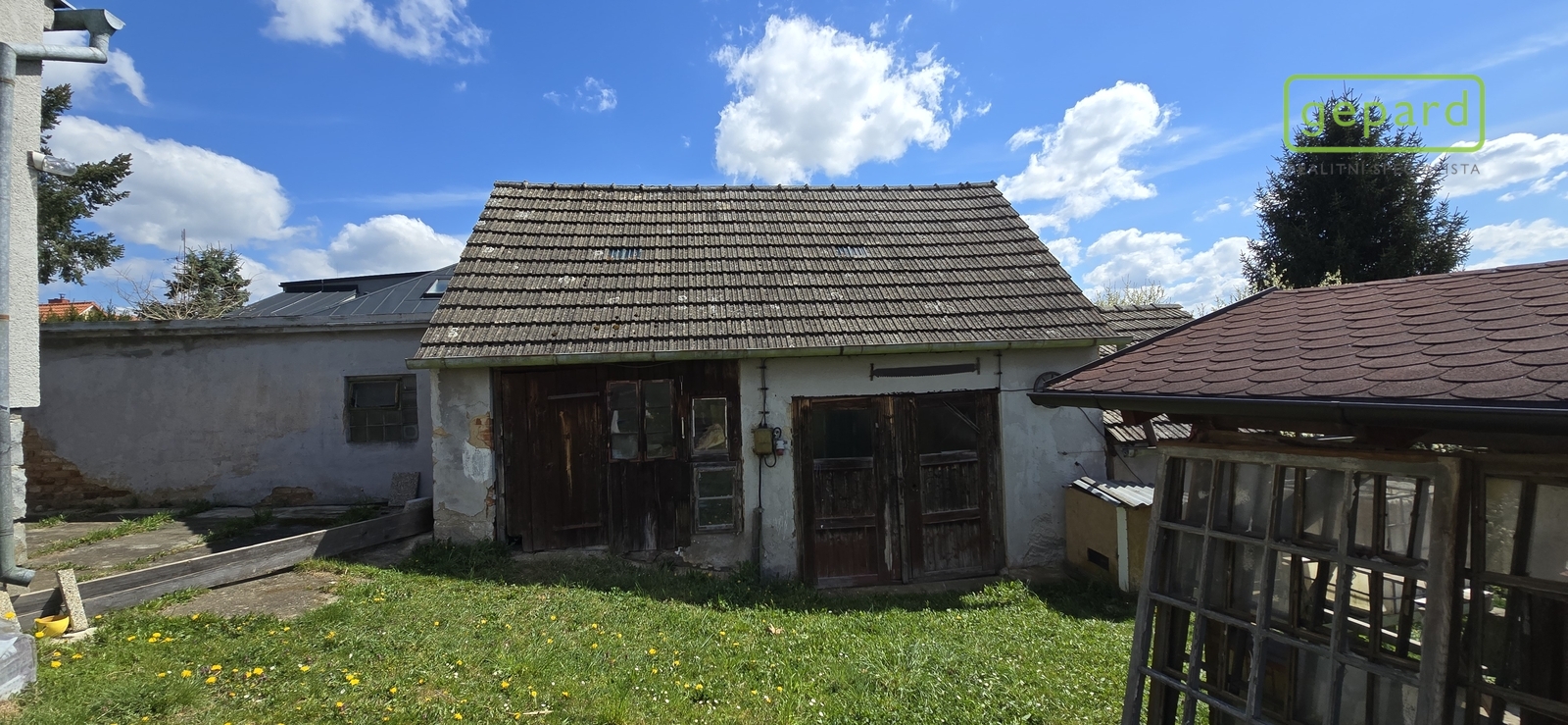 Na přilehlé zahradě stojí vedlejší stavba o zastavěné ploše 79m2, jejíž součástí je garáž, hospodářská stavení, dílna a další prostory v minulosti využívané pro chov drobných hospodářský zvířat. Na pozemku je dále pergola a záhonky, dále ovocné stromy.