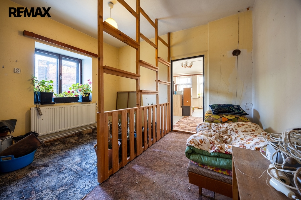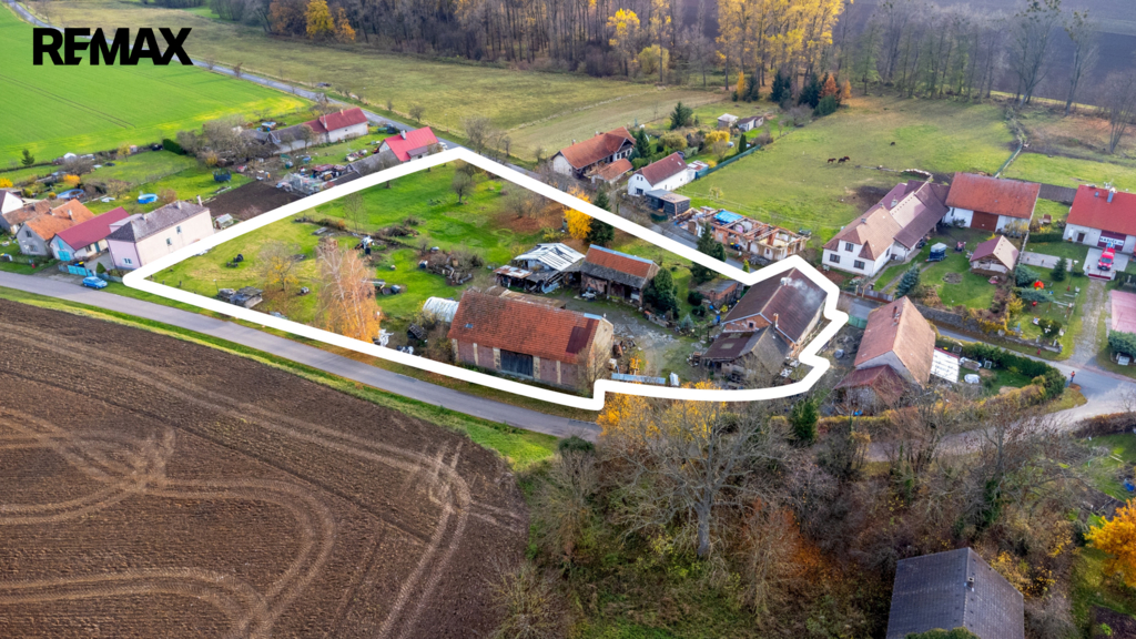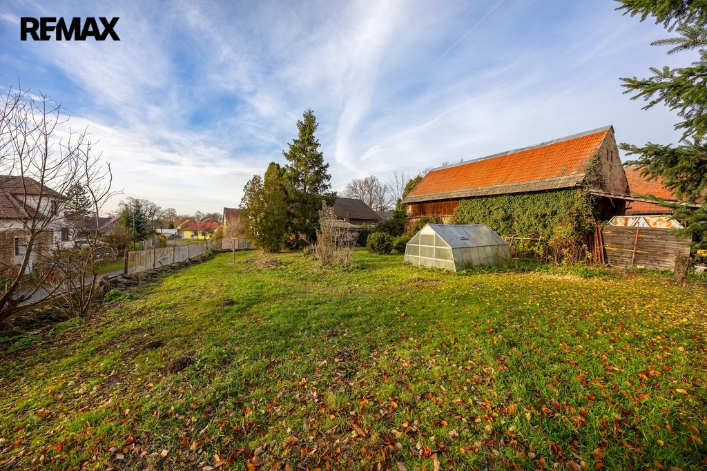 Na pozemku stojí podsklepený rodinný dům s číslem popisným o dispozici 4+1 určený k rekonstrukci a dále dvě stodoly. Dům je možné vytápět plynovým kotlem, krbovými kamny nebo kotlem na tuhá paliva. Je napojen na elektřinu a plyn. Na pozemku se též z každé strany nacházejí dvě vodovodní přípojky - jedna již osazena vodoměrem. Zdrojem vody pro dům je v současnosti jedna ze dvou studen - druhá studna se nachází na opačné straně pozemku a slouží zejména pro zalévání. V obci není zavedena kanalizace - odpad je řešen individuálně jímkou, případně se dá pomocí ČOV. Ohřev teplé vody zajišťuje elektrický bojler. Do hlavní stodoly je zavedena elektřina.