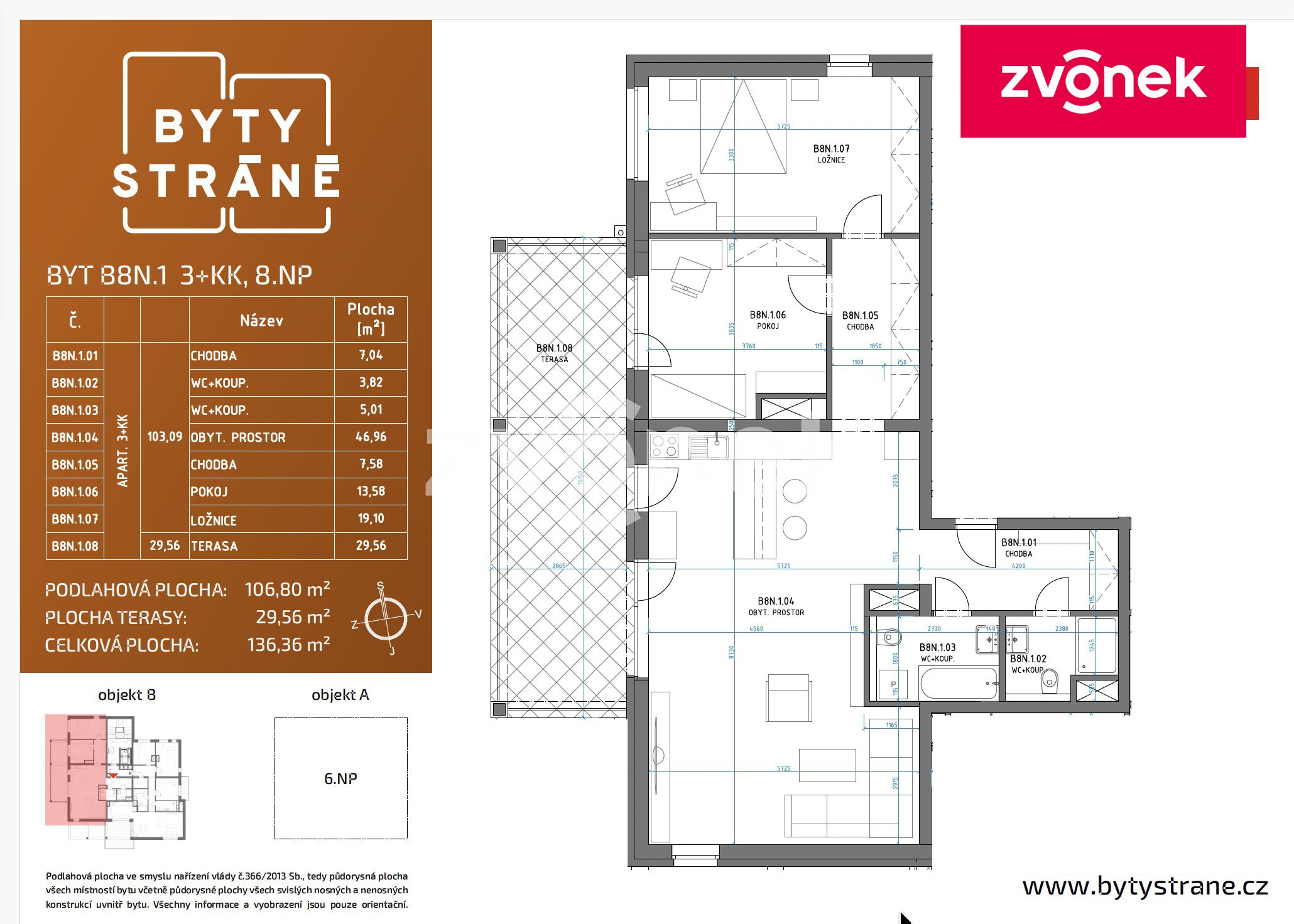 - Dispozice bytu: 3+kk