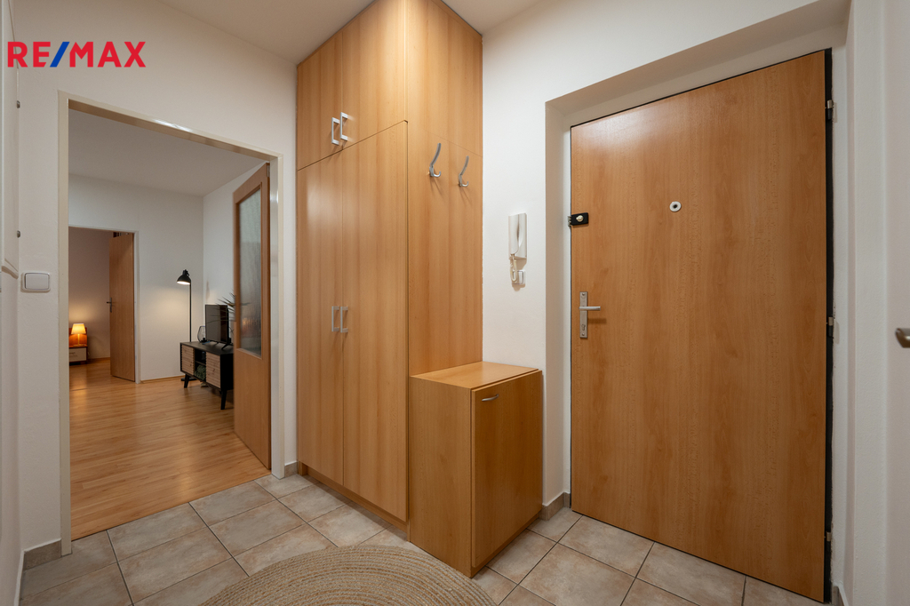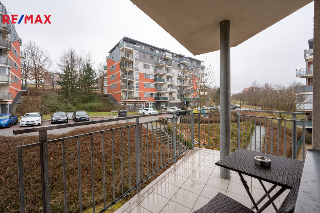 Z obývacího pokoje je vstup na prostorný balkon, ideální k posezení a relaxaci. Byt je vybaven novými podlahami a krásnými roletami, působí velmi moderně a udržovaně.