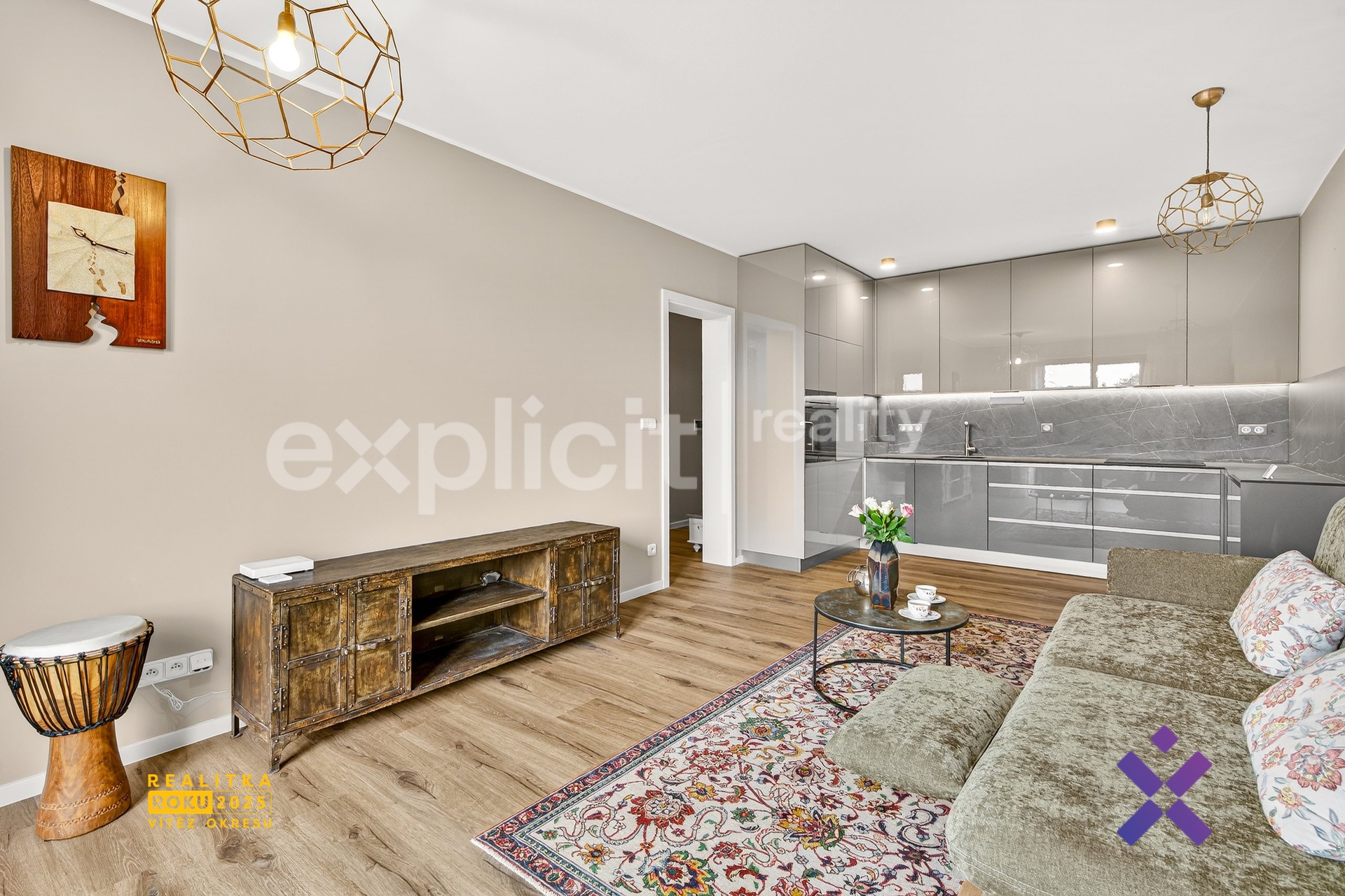 Byt s podlahovým vytápěním je vybaven luxusní kuchyňskou linkou, zhotovenou na míru, která je vybavena spotřebiči značky Siemens - parní trouba, lednička s mrazákem, digestoř, nerez dřez. Spotřebiče jsou ještě v záruce. Velký obývací pokoj je propojen s kuchyní a vstupem na balkon s výhledem do zeleně.