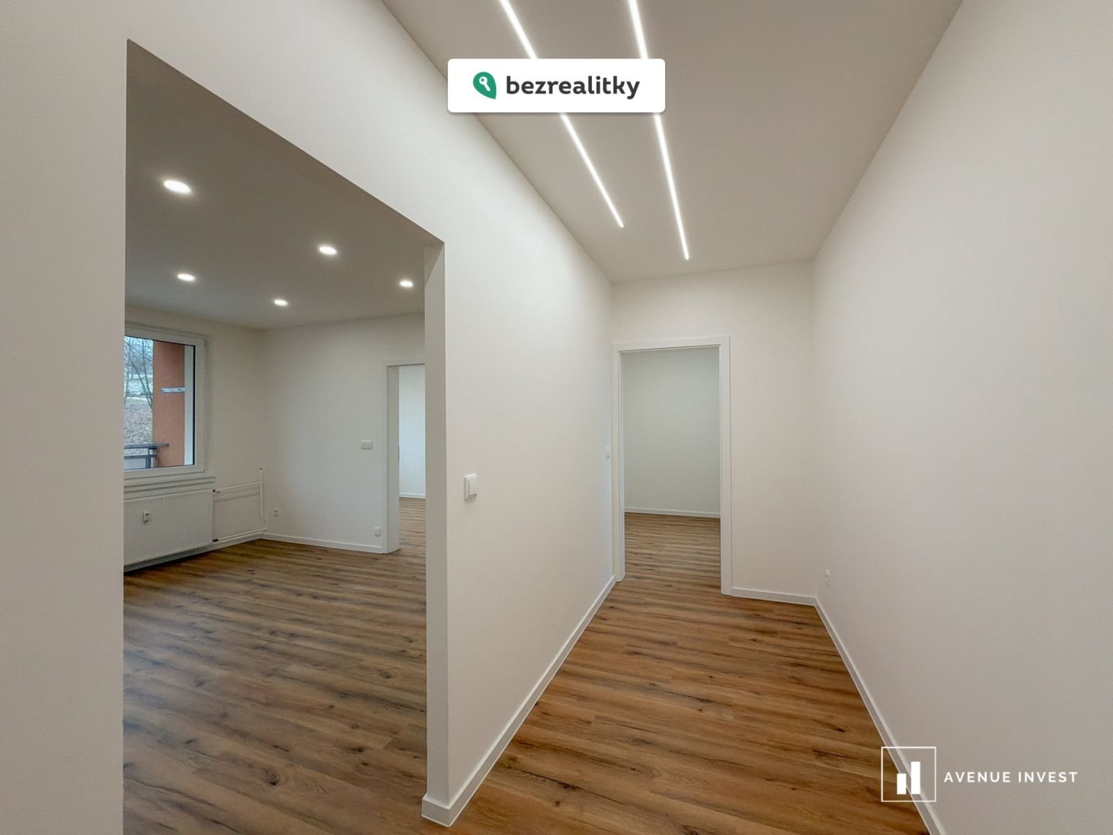 Byt je po kompletní rekonstrukci – nové rozvody elektřiny, vody a odpadů, moderní vinylové podlahy, sádrokartonové podhledy, nové omítky, bytové jádro a kuchyňská linka na míru s vestavěnými spotřebiči. Samozřejmostí je příprava na internet a TV.