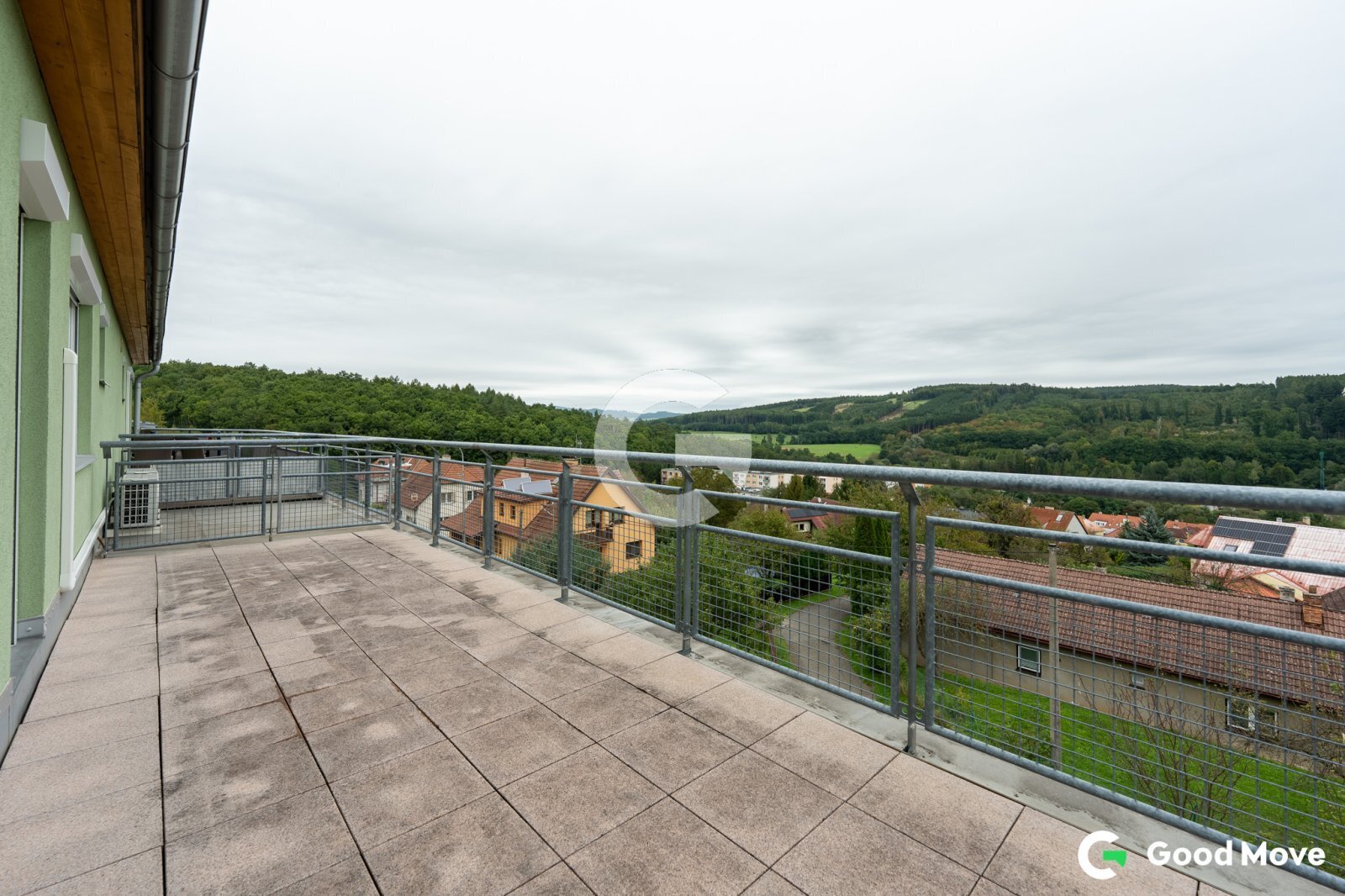 Dominantou bytu je prostorná terasa o velikosti 19 m² s předokenními roletami s elektrickým pohonem značky Somfy. V případě zájmu lze z terasy udělat zimní zahradu a vytvořit tak další plnohodnotný prostor k bydlení. Místo poskytuje jedinečné panoramatické výhledy na okolní zeleň – lesy, golfové hřiště v Kostelci i sportovní areál Vršava. Ideální pro relaxaci, ranní kávu nebo večerní posezení.