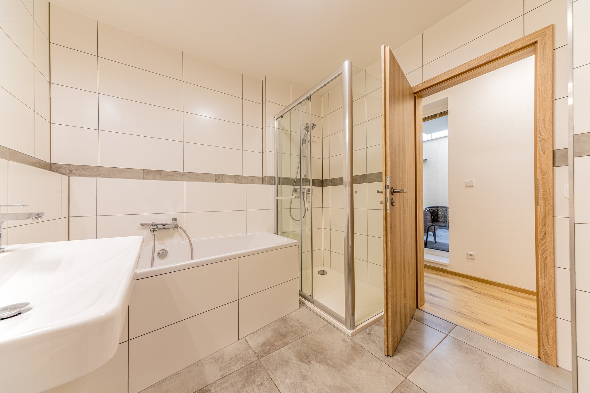 V suterénu domu (60 m²) je k dispozici prostorný obývací pokoj s kuchyňskou linkou a ložnicí, obě místnosti s přímým vstupem do zahrady skrze velkorysou terasu (27 m²) s východní orientací, kde si v letních dnech vychutnáte ranní slunce a příjemné posezení s rodinou či přáteli. Pro milovníky wellness je zde v rámci prostorné koupelnové části moderní sauna se sprchovým koutem a WC, která umožňuje regeneraci a odpočinek přímo v pohodlí domova. Součástí suterénu je také samostatná komora, chytře řešený úložný prostor pod schodištěm a technická místnost s dalším úložným prostorem.