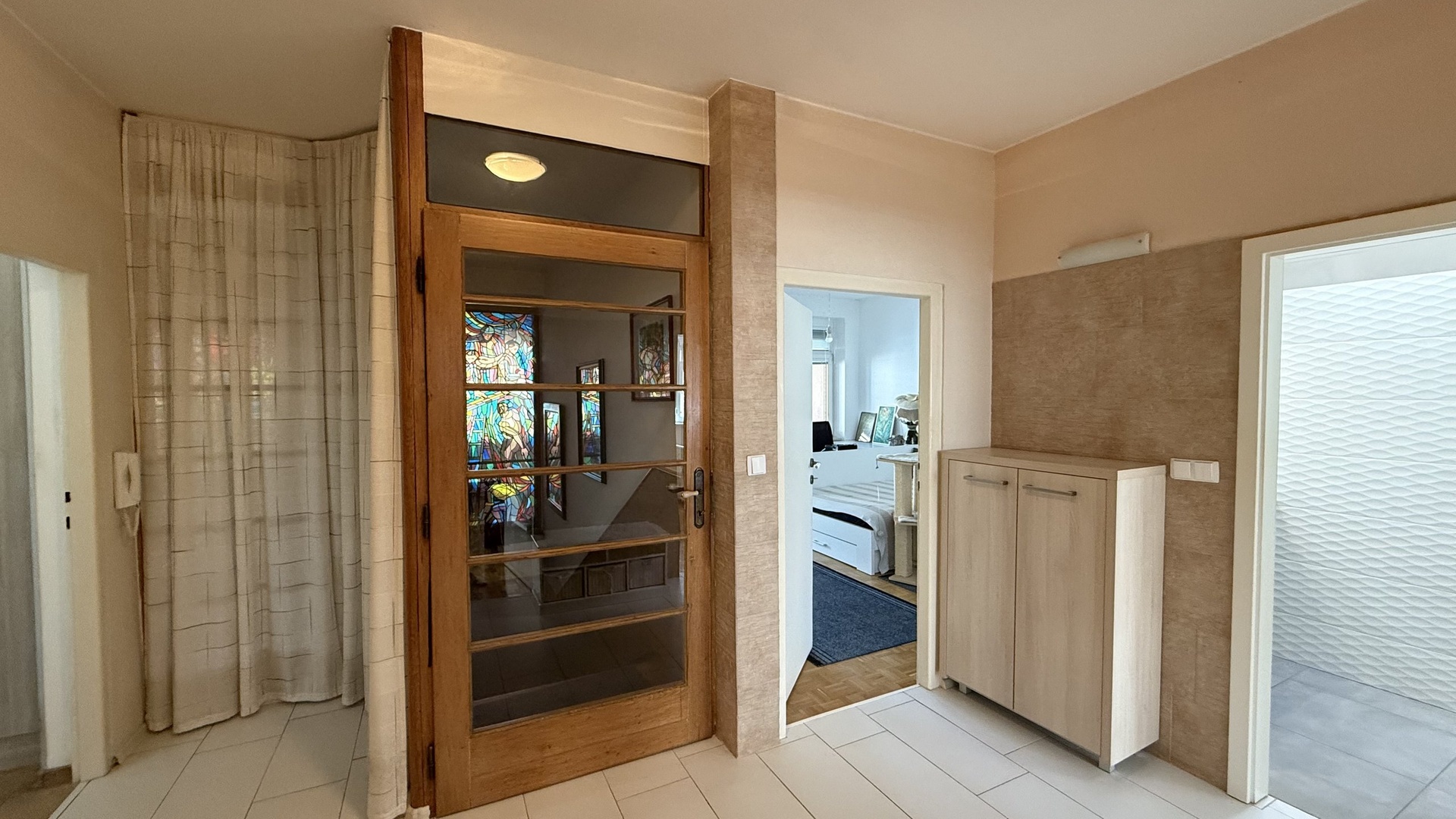 Dům je členěn do 1.PP a 2. NP, kdy po vstupu do průjezdu ( 37 m2), vstupní haly , která pokračuje napříč domem do zahrady, se lze dostat do samostatného bytu 3+1 ( 84 m2) v 1.NP a po samostatném schodišti s vitráží pak do 2.NP, kde situován byt 3+1 ( 126 m2). V suterénu domu ( 129 m2) se pak nachází jednotlivé sklepní místnosti, kotelna a prádelna se sprchovým koutem.