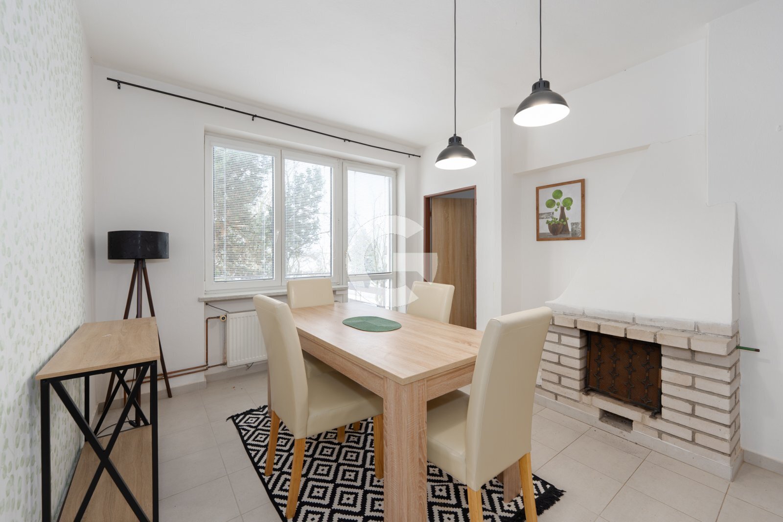 Dispoziční řešení domu je velmi praktické a promyšlené. Po vstupu do domu se po několika schodech dostaneme do hlavní obytné části, kterou tvoří prostorná jídelna s krbem, jež je přirozeným srdcem celého domu. Z této místnosti je vstup do samostatné kuchyně, koupelny, odděleného WC a zároveň do tří samostatných pokojů umístěných na stejném patře. Z obytné části je také vstup na terasu, ideální pro posezení a relaxaci.