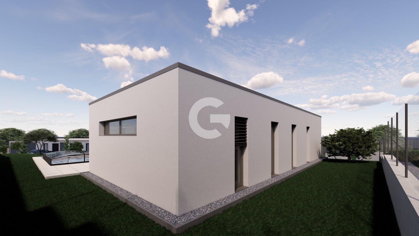 Dům je situován na prostorném pozemku o velikosti 484 m² nebo 520 m², který poskytuje dostatek prostoru pro zahradu, relaxační zónu nebo dětské hřiště. Samozřejmostí jsou dvě venkovní parkovací stání a navíc dvojgaráž o ploše 40,3 m², která pohodlně pojme nejen automobily, ale i sportovní vybavení či nářadí.