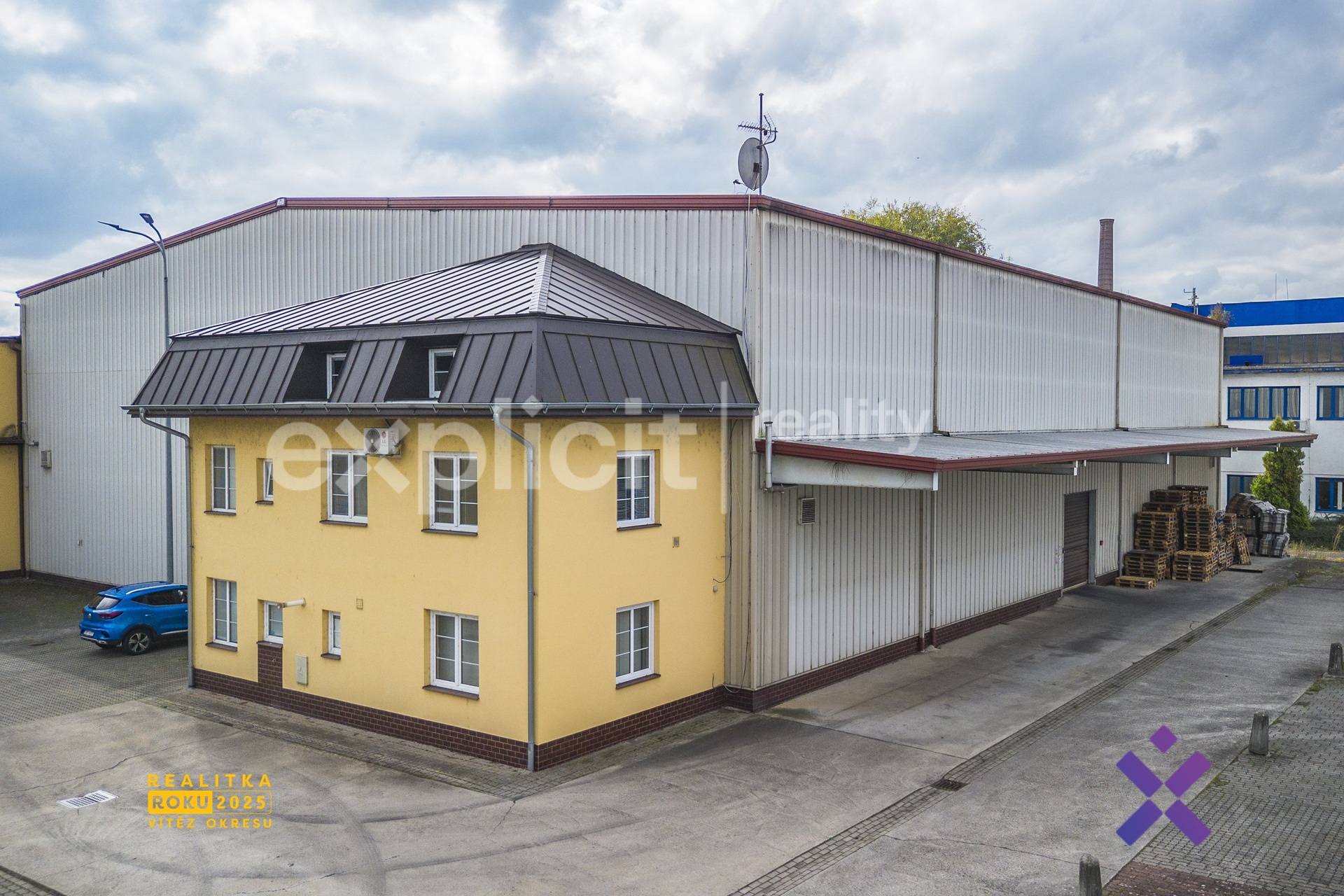 - dvě hlavní části: hlavní administrativně–skladová budova 1 182 m² + přístavba haly se sklady a kancelářemi 1 292 m²