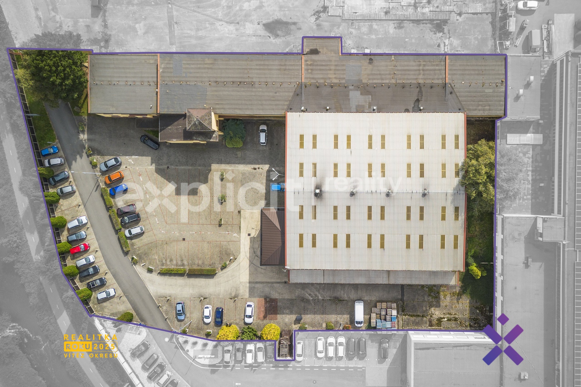 - parkování až pro 40 vozů přímo v areálu (část pronajata)