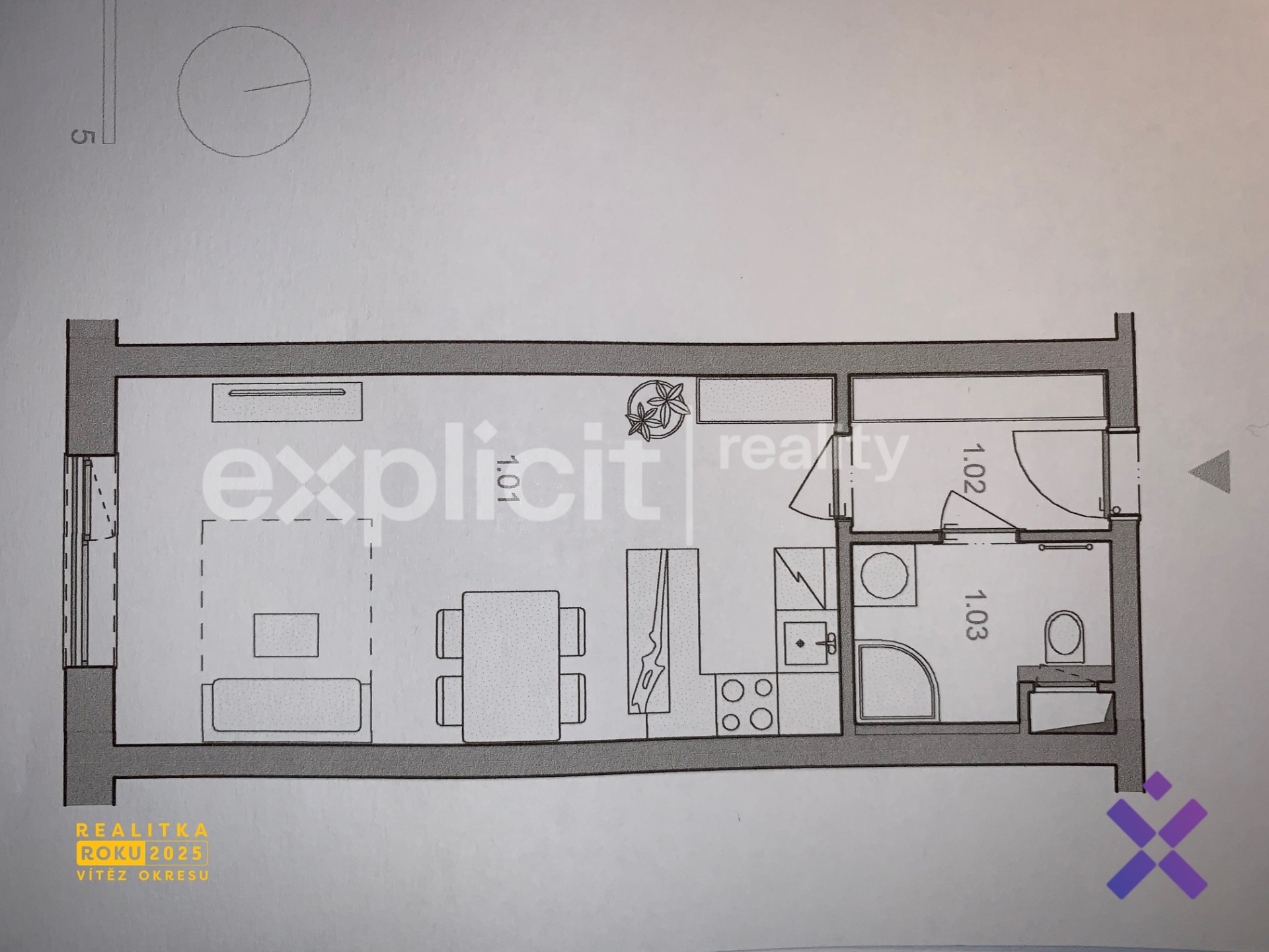 - Dispozice bytu: 1+kk