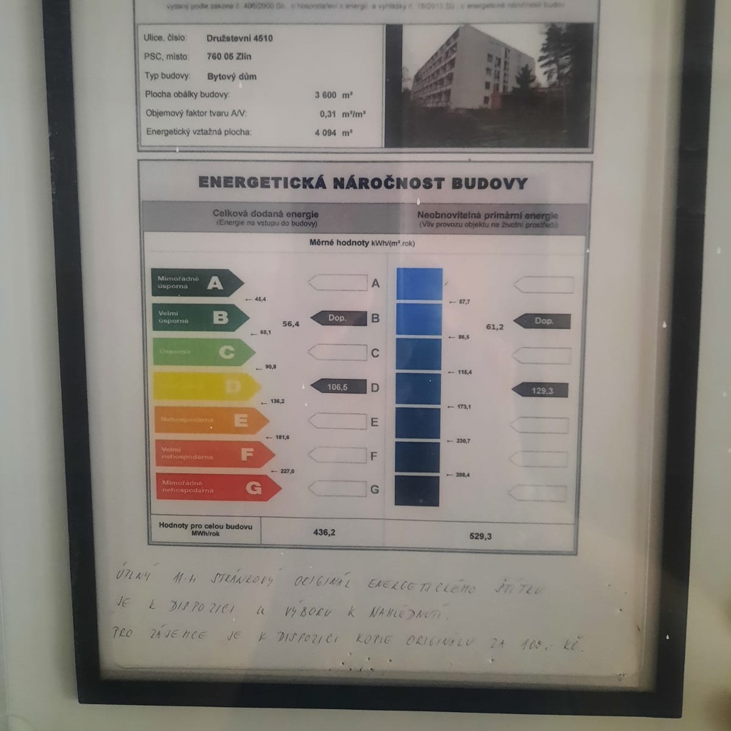 - Energetická náročnost budovy: D - Méně úsporná
