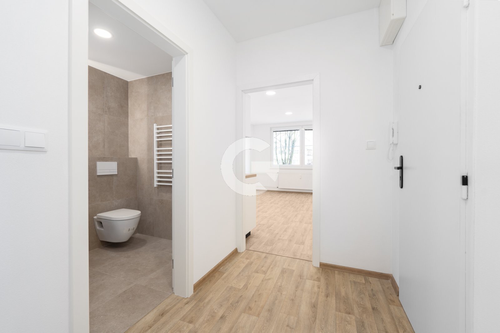 Jednotka prošla vkusnou rekonstrukcí – nové podlahy, moderní kuchyňská linka na míru včetně vestavných spotřebičů, zděné jádro, nové rozvody elektřiny a vody, plastová okna. Koupelna disponuje sprchovým koutem, toaletou a prostorem pro pračku.