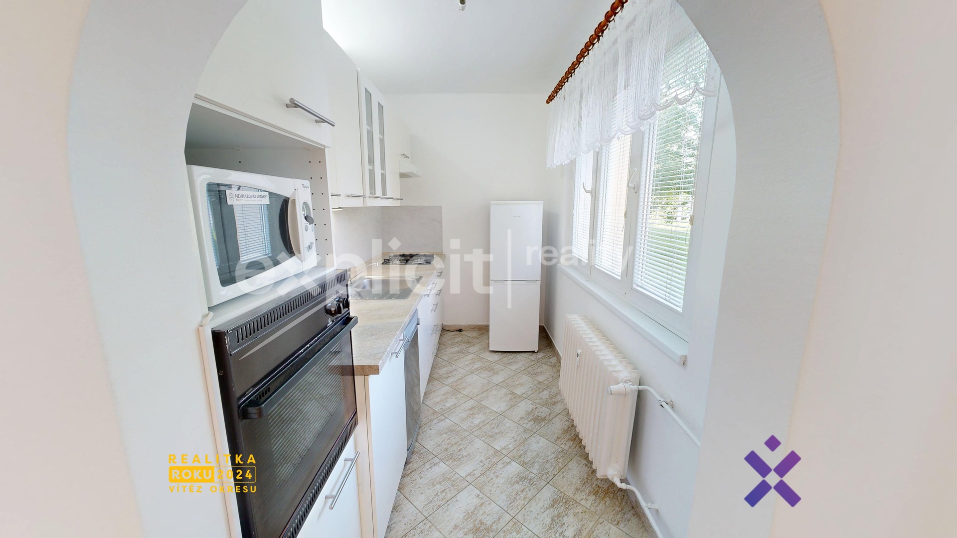 Kuchyň je vybavena: mikrovlnou troubou, varnou deskou a součástí kuchyně je i trouba a lednice.