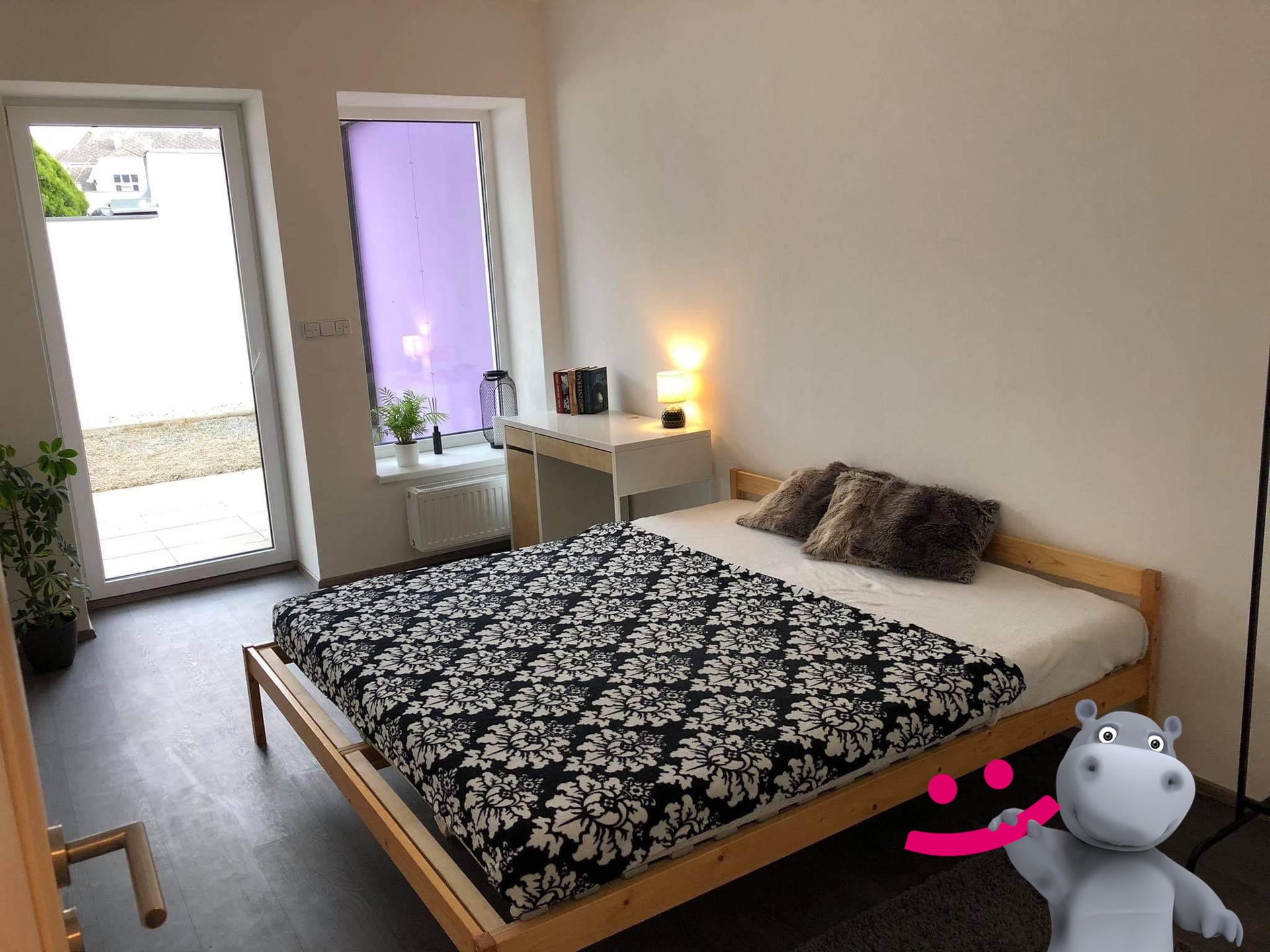 Byt je zařízen kuchyňskou linkou s vestavěnými spotřebiči, menší šatnou, je částečně vybavený TV stěnou, stolem + 2x židle. Součástí je sklep.