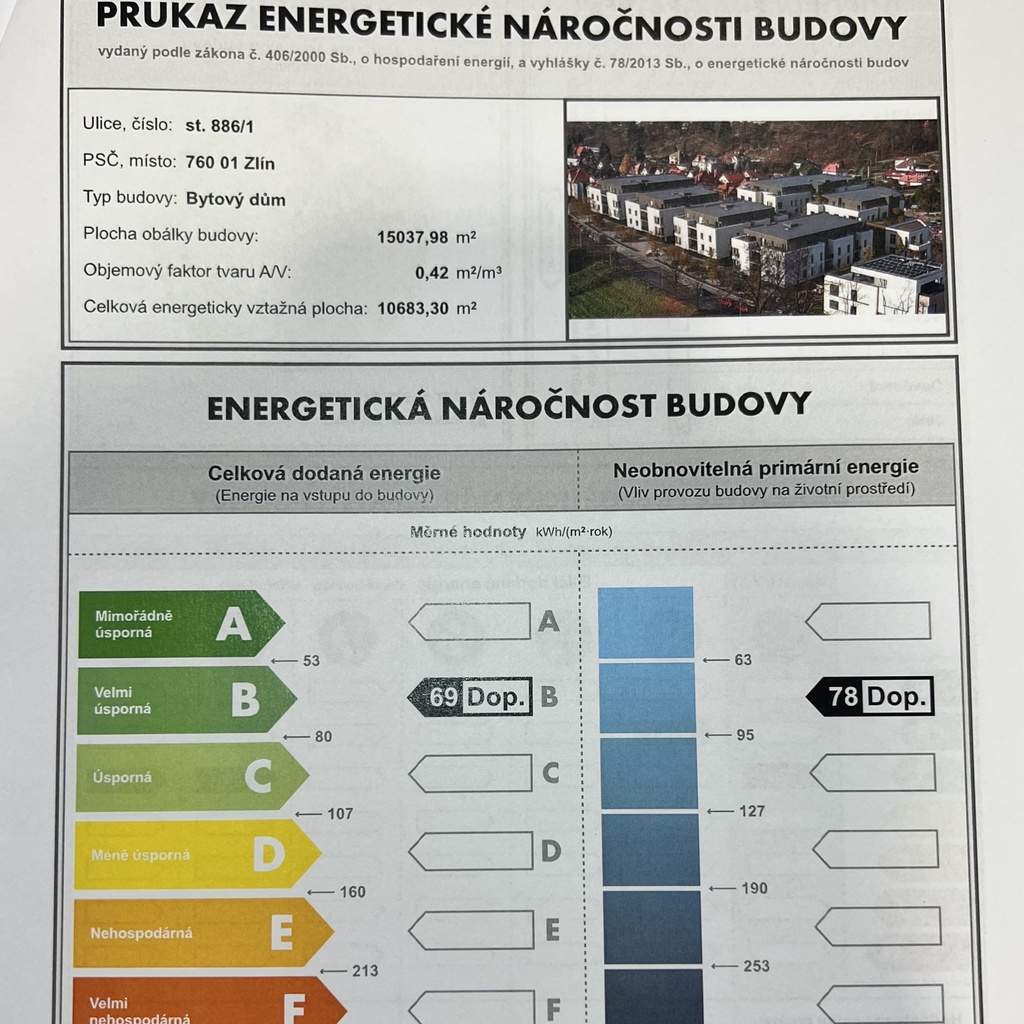 - Ukazatel energetické náročnosti budovy: 69 kWh/m²