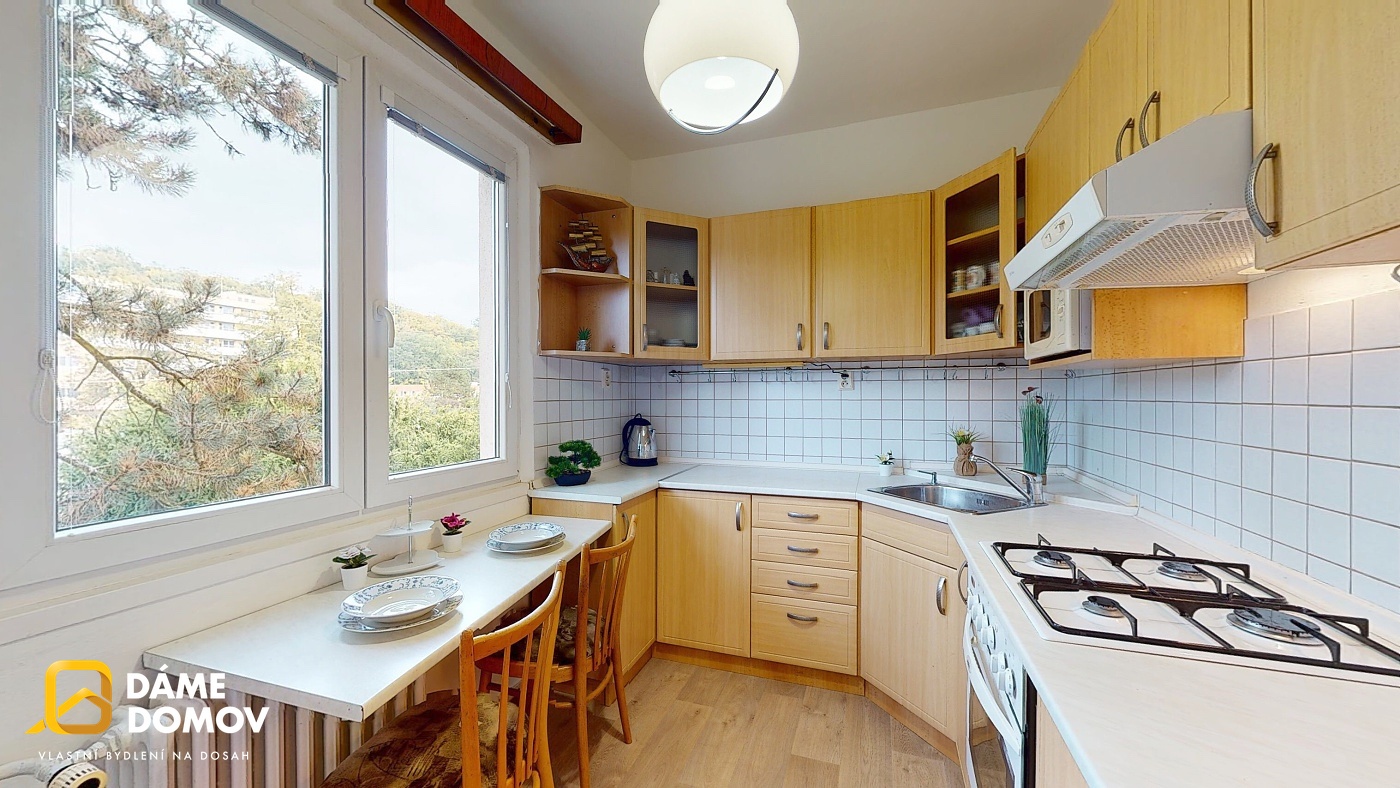 Byt má celkem 56 m2, jeho součástí je lodžie a sklep. Nachází se naproti Baťovy nemocnice v klidné a vyhledávané lokalitě. Světlý prostorný byt s neprůchozími pokoji, dostatečně velká ložnice, velký obývací pokoj, ze kterého se vstupuje na lodžii, chodba s vestavěnými skříněmi, koupelna s vanou, WC je zvlášť. V kuchyni rohová kuchyň. linka, menší stůl s židlemi a lednice.