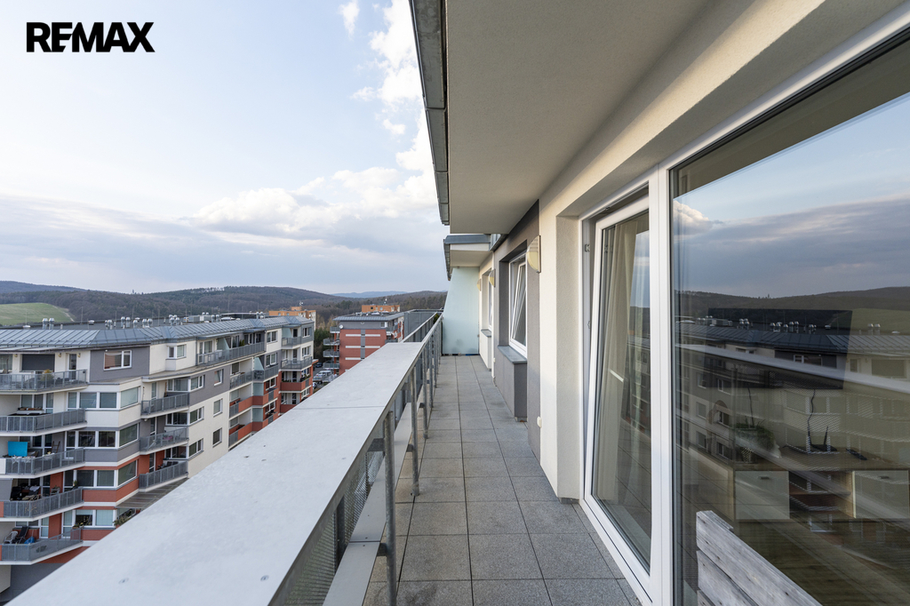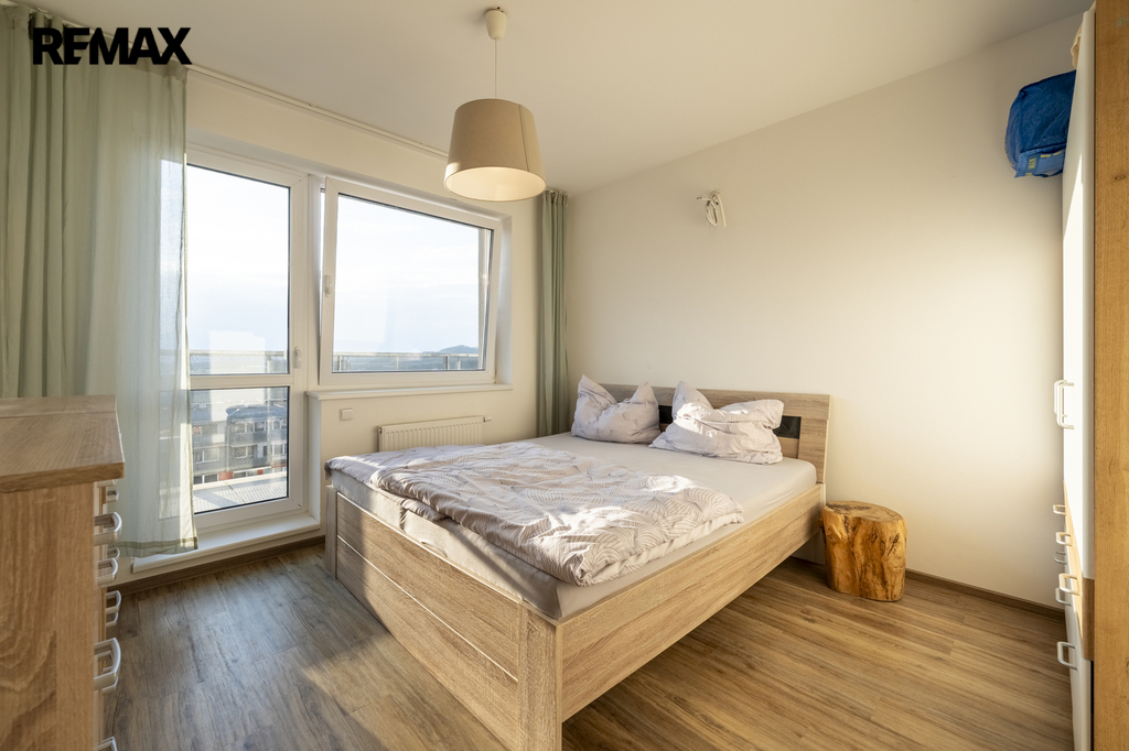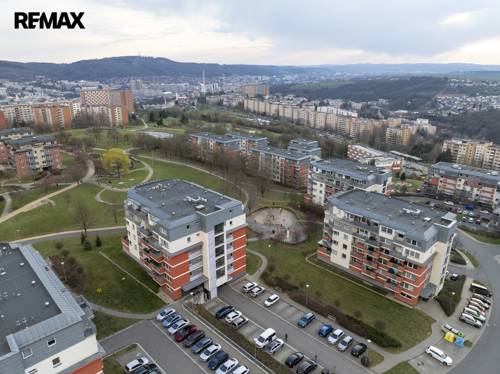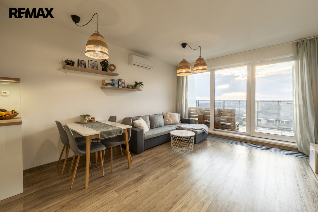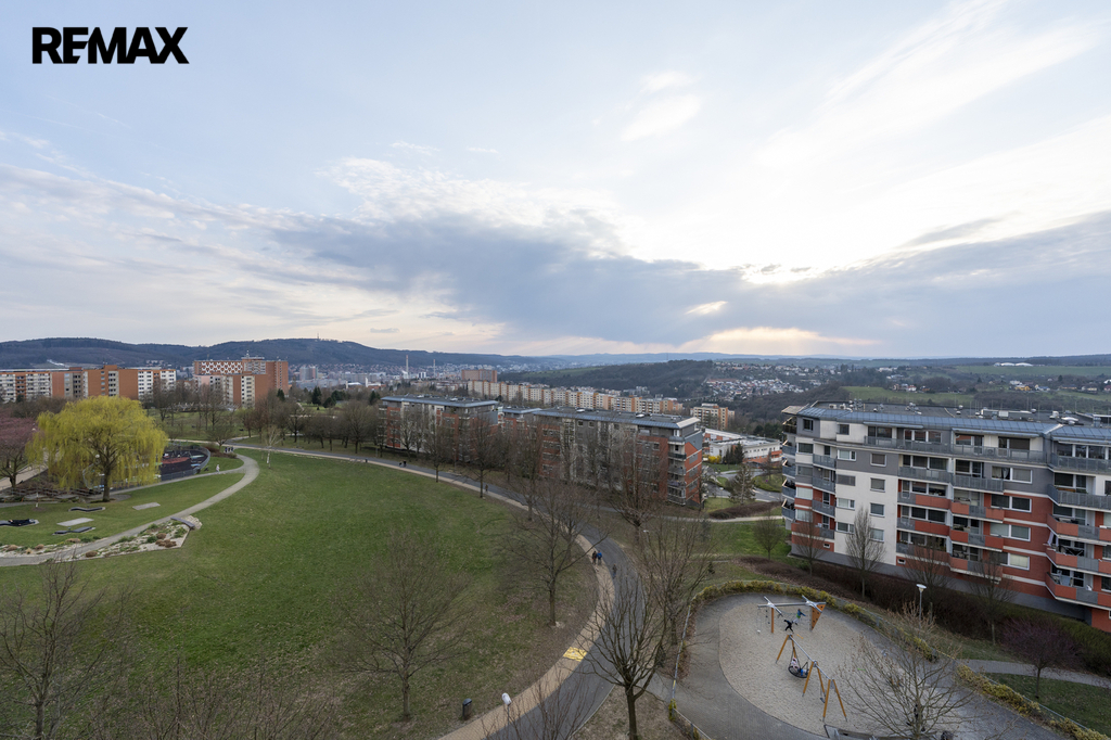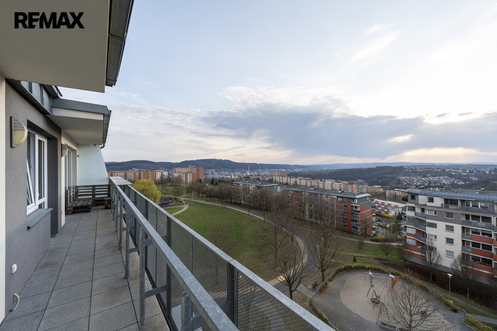 Hlavní dominantou bytu je nádherný výhled na celý Zlín, který si můžete vychutnat nejen z obývacího pokoje, ale také z prostorného balkonu orientovaného na západ. Každý západ slunce zde vytváří naprosto výjimečnou atmosféru.