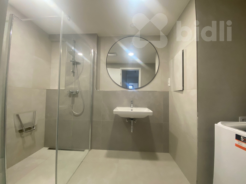 koupelna se sprchovým koutem a pračkou