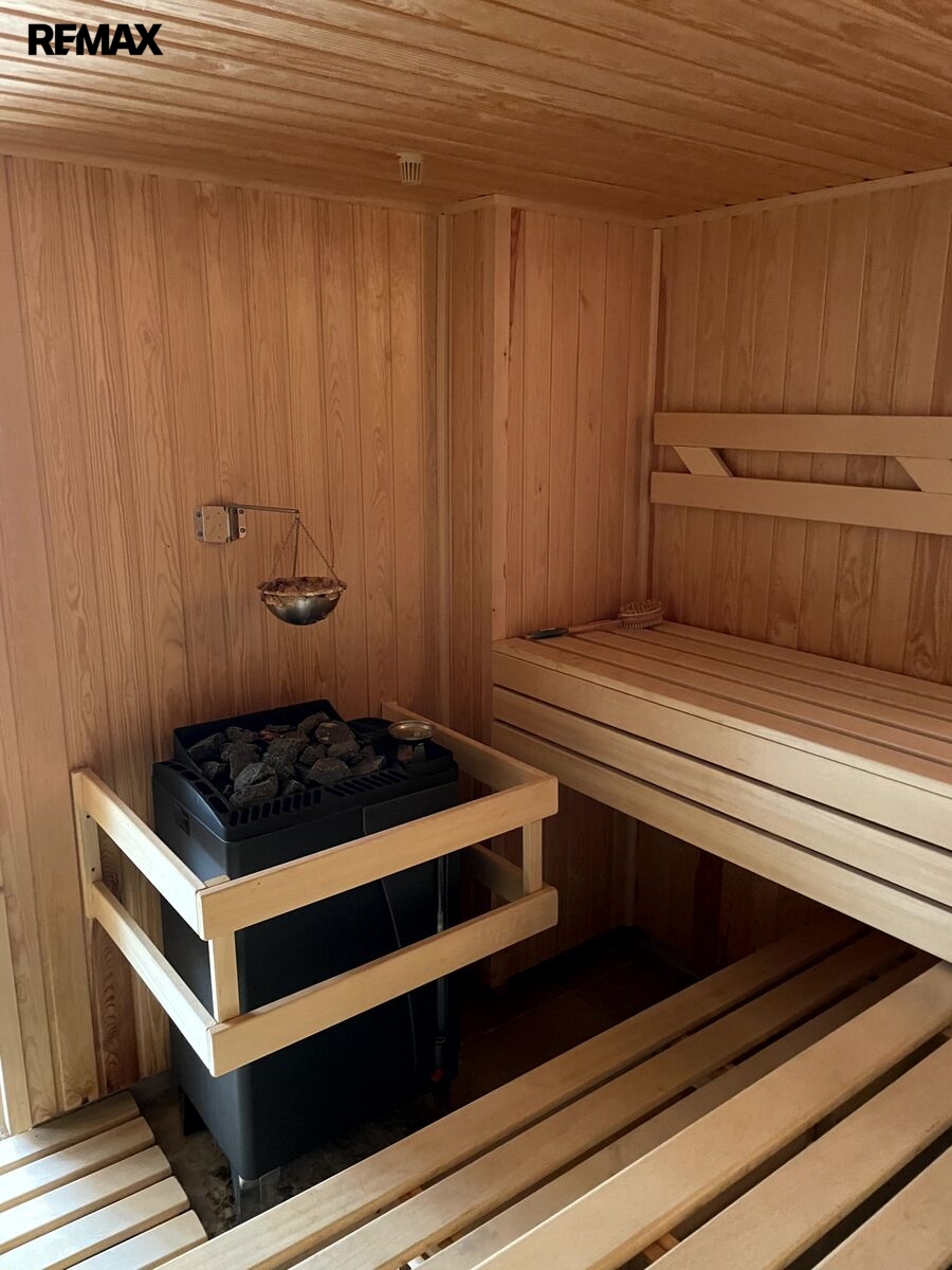 Krytý vyhřívaný bazén (o rozloze 131 m²) s přímým vstupem z obývacího pokoje, který je ideální pro relaxaci i celoroční koupání. Bazén je doplněn saunou a příslušenstvím, což zajišťuje maximální komfort a wellness zážitky přímo u Vás doma.