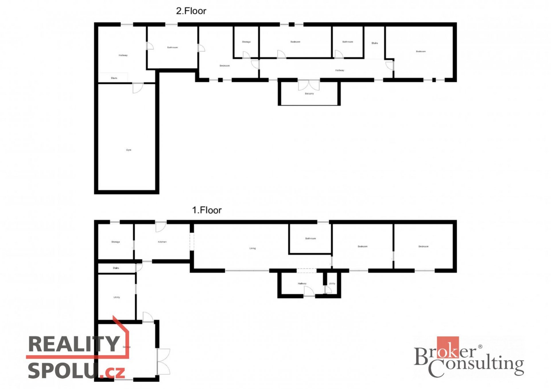 Dispozice domu: na přízemí se nachází vstupní hala, koupelna s vanou, sprchovým koutem, toaletou s umyvadlem, dvěma ložnicemi, kde každá disponuje prostornou vestavnou šatní skříní. Světlý obývací pokoj s jídelnou je útulný i díky krbovým kamnům, navazující kuchyň umožňuje propojení s obývacím pokojem, je zde i prostorný špajz. Z kuchyně je přímý vstup na terásku za domem, kde lze ráno ráno posnídat. Hlavní venkovní sezení je situované u obývacího pokoje v zahradě. Samostatně přístupná technická místnost, která slouží i jako prádelna, s pračkou a se sušičkou je hned vedle garáže (22 m2). Do patra se dostaneme po točitých schodech, tuto část majitelé využívají pro relaxaci. Najdeme zde velkou koupelnu s toaletou, se sprchovým koutem, saunou, odpočívárnu a prostornou pracovnu s fitness koutem.