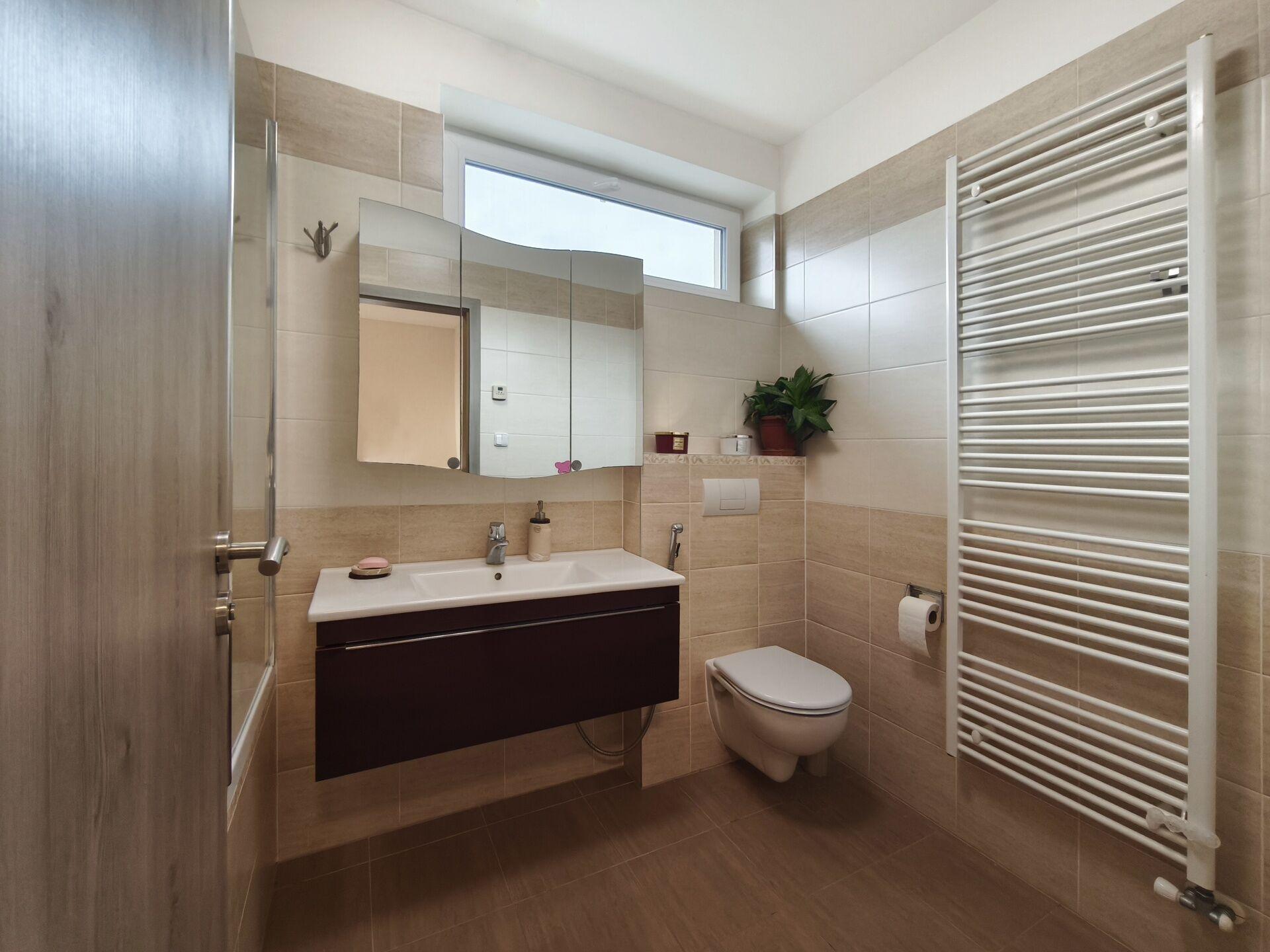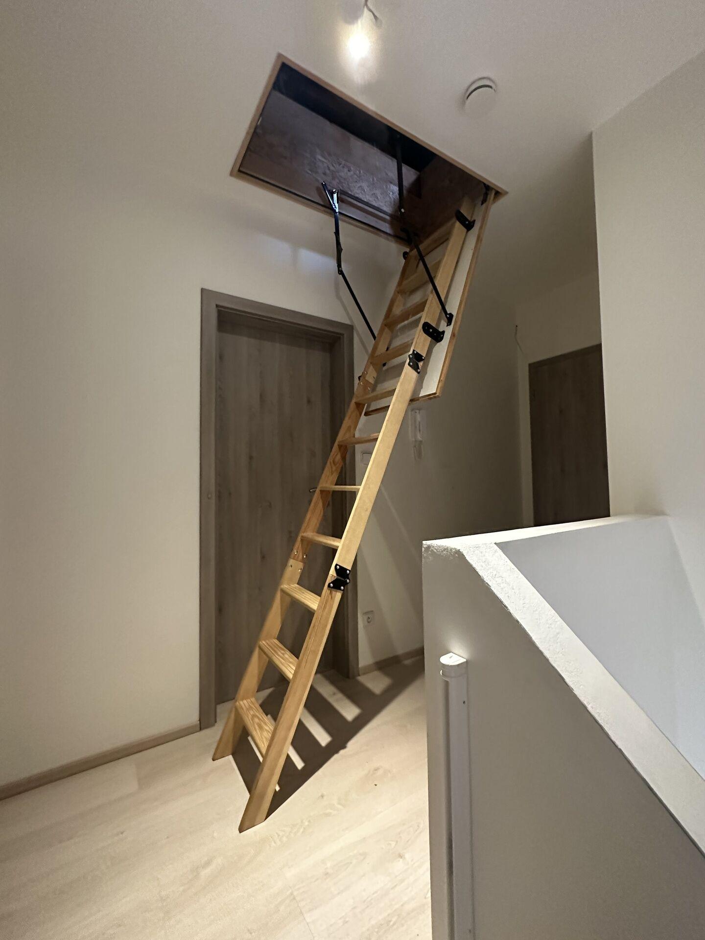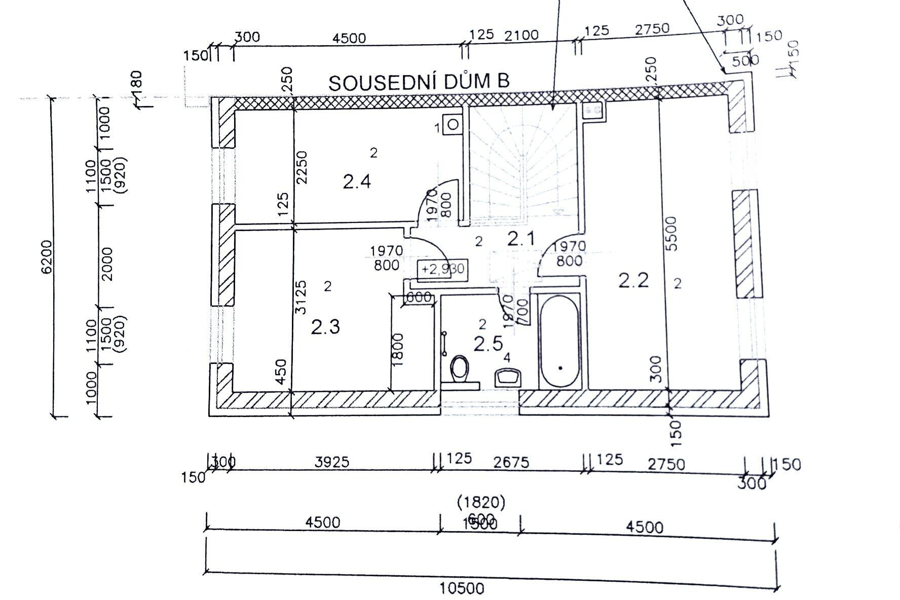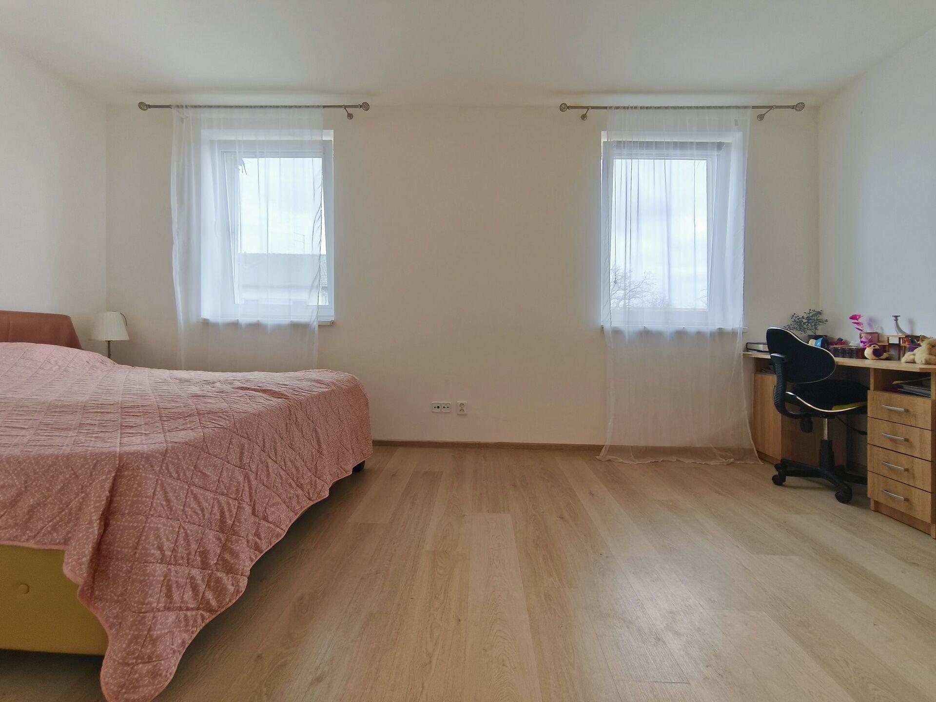 V přízemí se nachází obývací pokoj s kuchyňským koutem (34 m²) se vstupem na západně orientovanou zahradu, předsíň, pracovna (6 m²), koupelna s toaletou a komora. V patře jsou umístěny tři samostatné pokoje (15 m², 11 m² a 10 m²), druhá koupelna s vanou a toaletou. Prostorné pochozí podkroví jistě využijete jako praktický odkládací prostor.