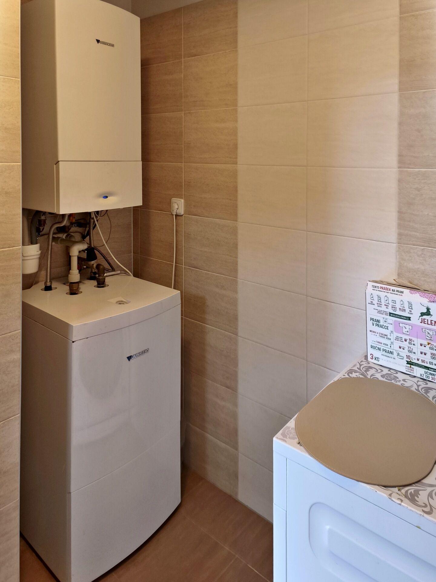Zděný dům (Porotherm) z roku 2016 je postaven s důrazem na úspornost (okna s izolačním trojsklem), je napojen na obecní vodovod, kanalizaci i plyn. Plynový kotel Junkers (zálohy 3.100 kč/měs), vytápění je řešeno podlahovým topením. V obývacím pokoji můžete instalovat krbová kamna - dům má komín.