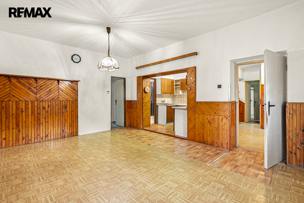 Dům byl postaven v 70. letech a vyžaduje kompletní rekonstrukci. Díky velkému prostoru, který nabízí, jej lze využít i jako dvougenerační bydlení. Na pozemku se nacházejí dvě garáže.