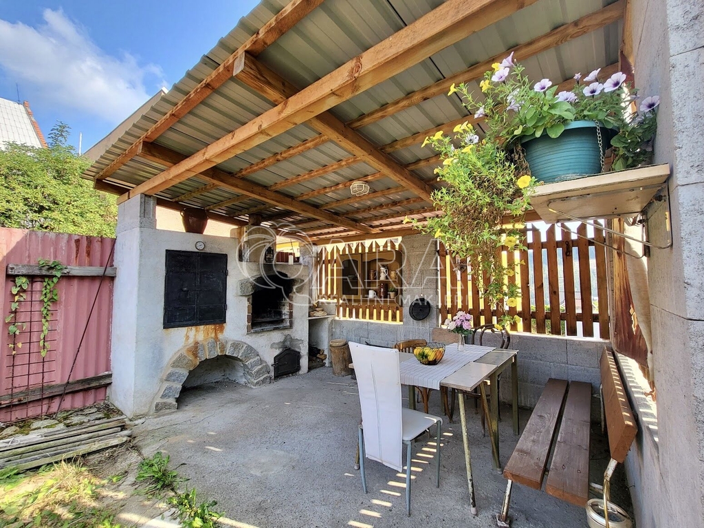 Výhodou je menší dvorek orientovaný do vnitrobloku, nenáročný na údržbu, na kterém se nachází pergola s udírnou a skleník.